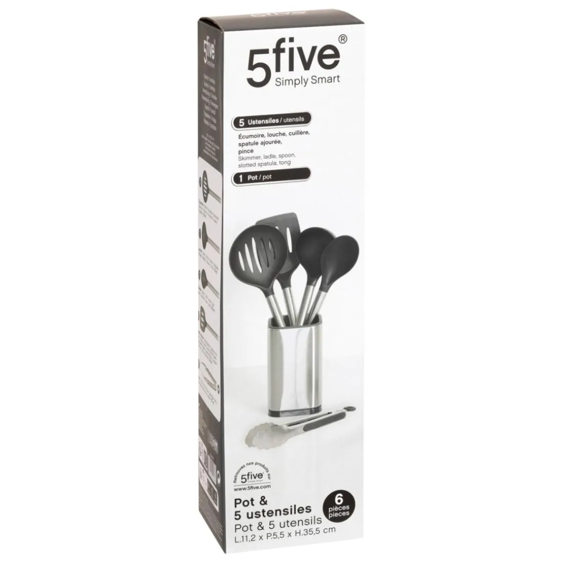 Caractéristiques 5 ustensiles de cuisine avec pot de rangement en inox