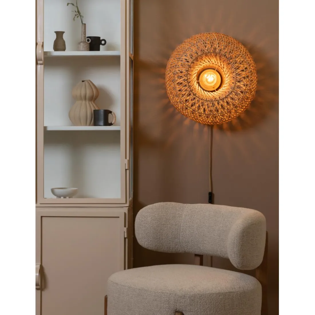 L’applique murale Arizona, de marque GOOD&MOJO est une pièce authentique qui apportera une touche de naturel à votre intérieur. Son abat-jour, d’un diamètre de 50cm et d’une hauteur de 23cm, est fabriqué en rotin. Ce matériau lui confère un look organique et bohème. Ses détails soigneusement tissés et sa teinte naturelle rotin apportent une ambiance chaleureuse et cosy. Elle se distingue par sa forme en « S » et par le fait qu’elle est attachée au mur, idéal pour optimiser l’éclairage des pièces. Cette applique est un must pour les amateurs de style authentique et naturel.
