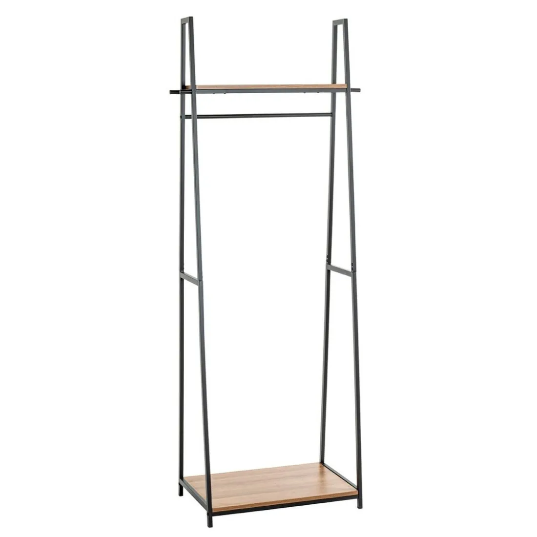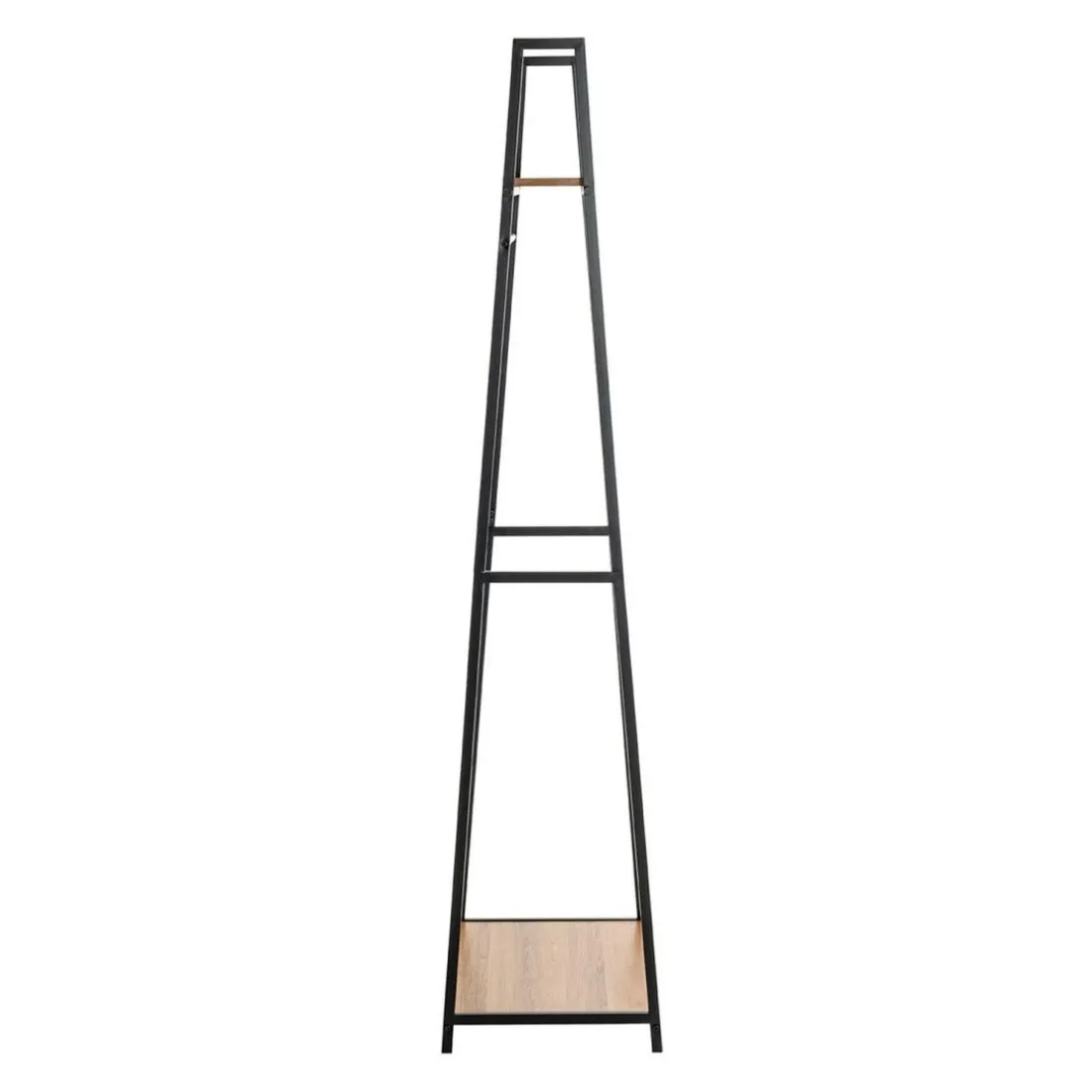 en tube d’acier laqué noir, plateaux en MDF décor chêne