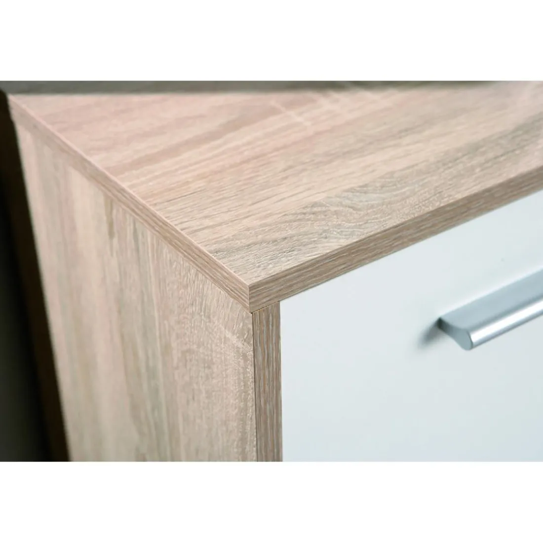 Le Bahut 5 rangements Bois 77×30 cm Blanc et Naturel VENEZIA est élégant et original avant tout ! Ses poignées en métal renforcent sa robustesse et sont au top de la tendance