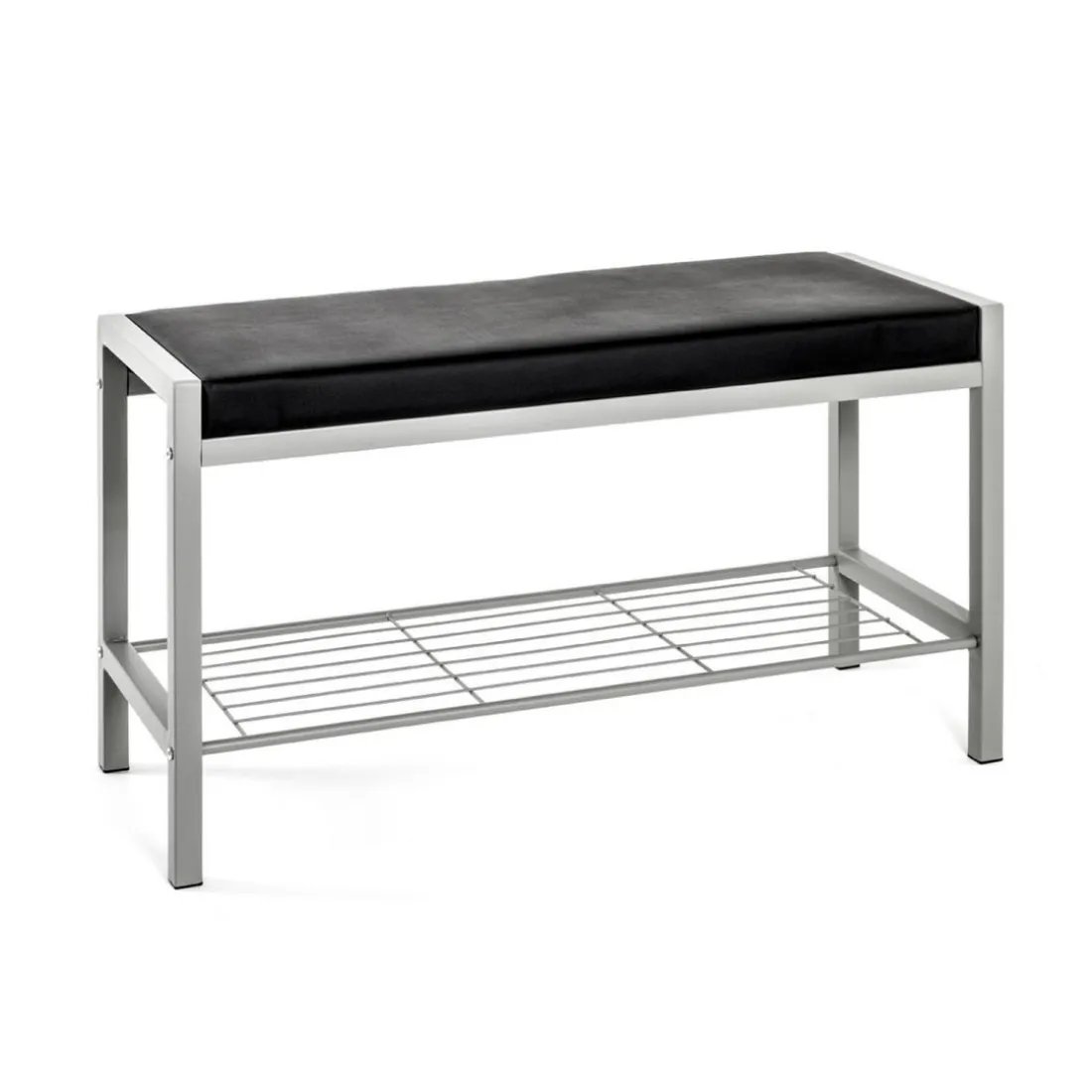 Ce Banc de rangement pour chaussures de la marque 3S. x Home est un véritable meuble 2-en-1. Doté d’une assise rembourrée confortable en tissu synthétique de couleur noir, il offre un aspect cuir noble. Sa base robuste, composée de tubes d’acier aluminium, qui promet une grande stabilité. L’étagère intégrée vous permet d’y ranger vos chaussures aisément. Avec ses dimensions de 48 cm de hauteur et 80 cm de longueur, il s’intégrera parfaitement dans votre intérieur.