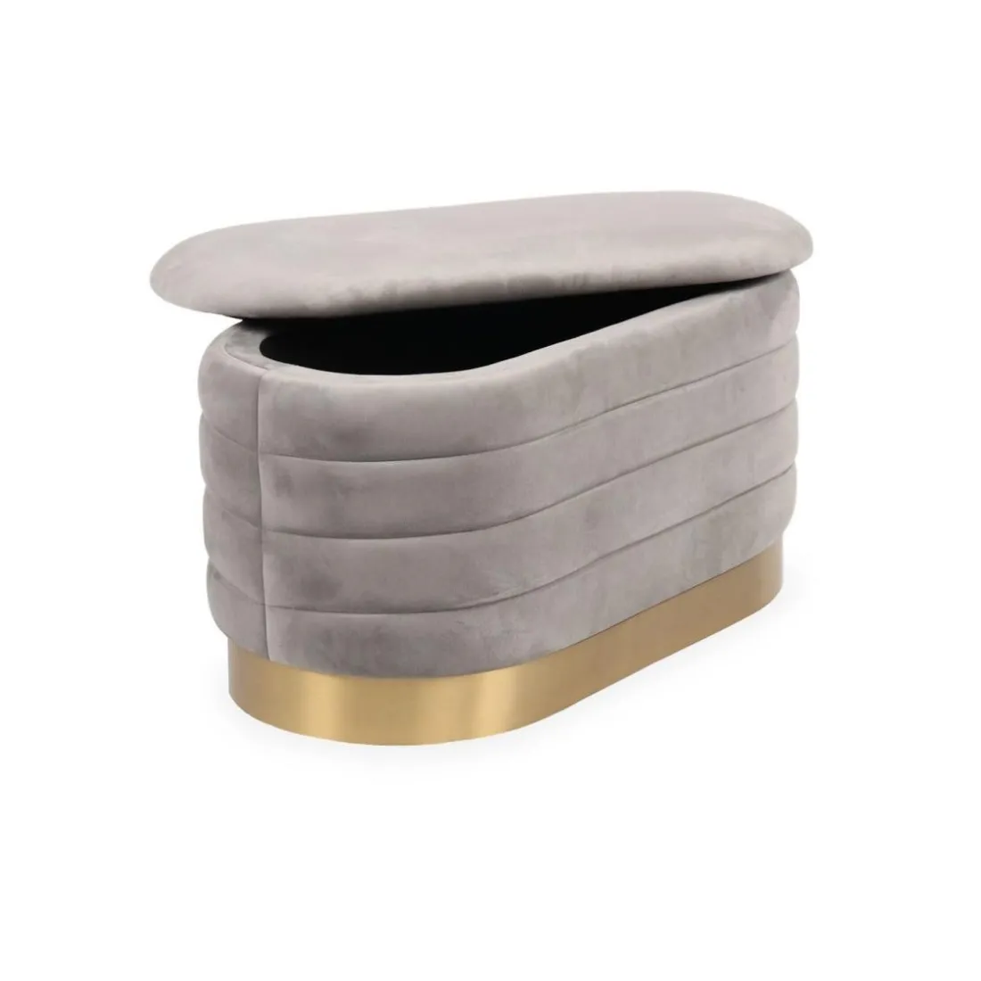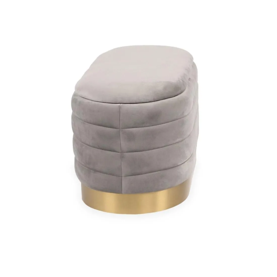 Caractéristiques Banquette-coffre moderne matelassée avec base dorée Philae Velours Gris clair