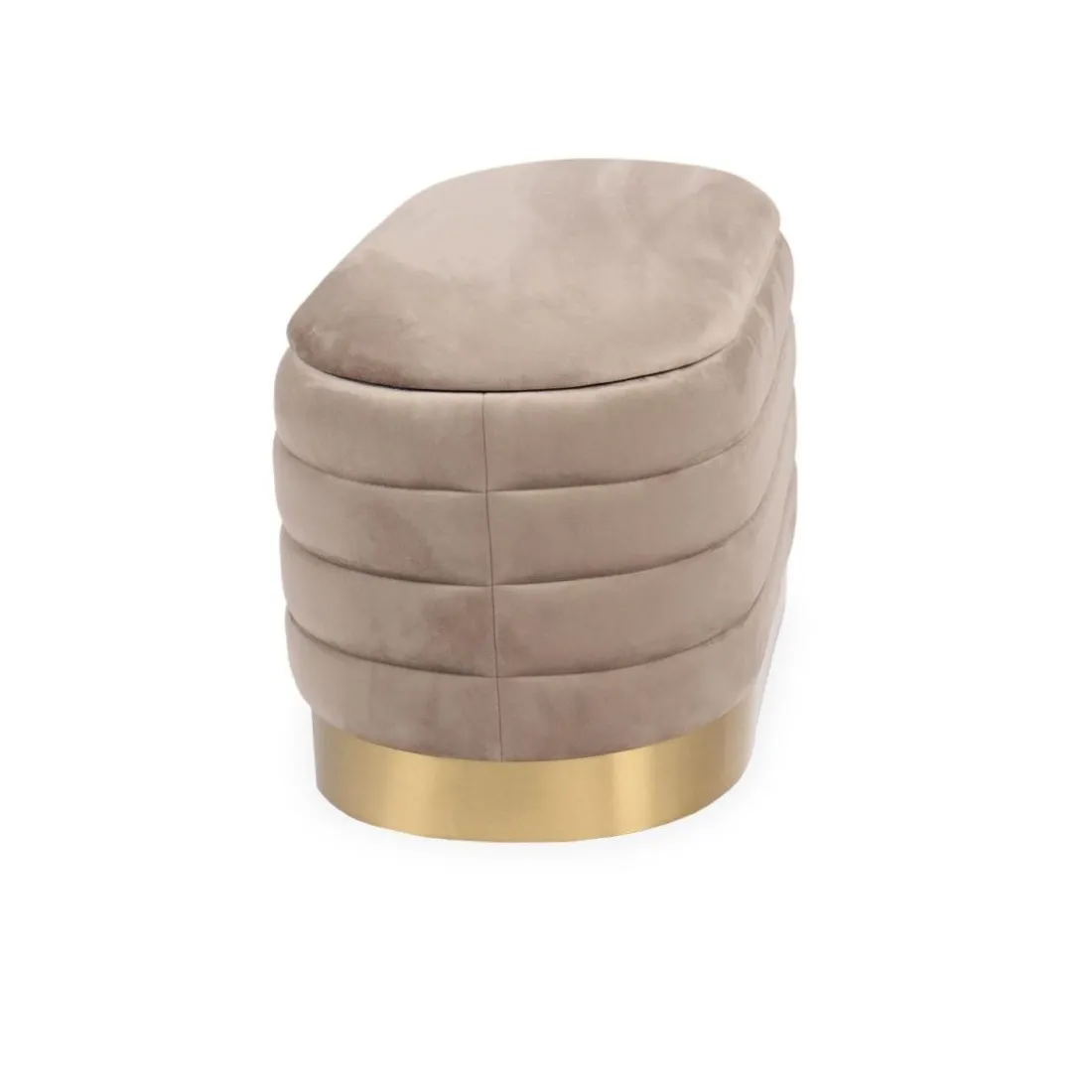 Caractéristiques Banquette-coffre moderne matelassée avec base dorée Philae Velours Taupe