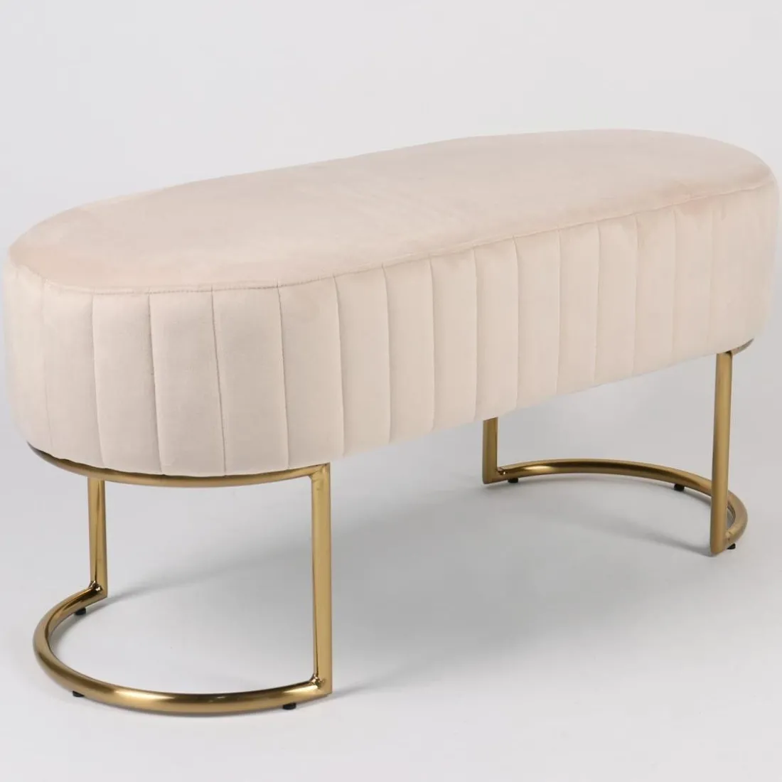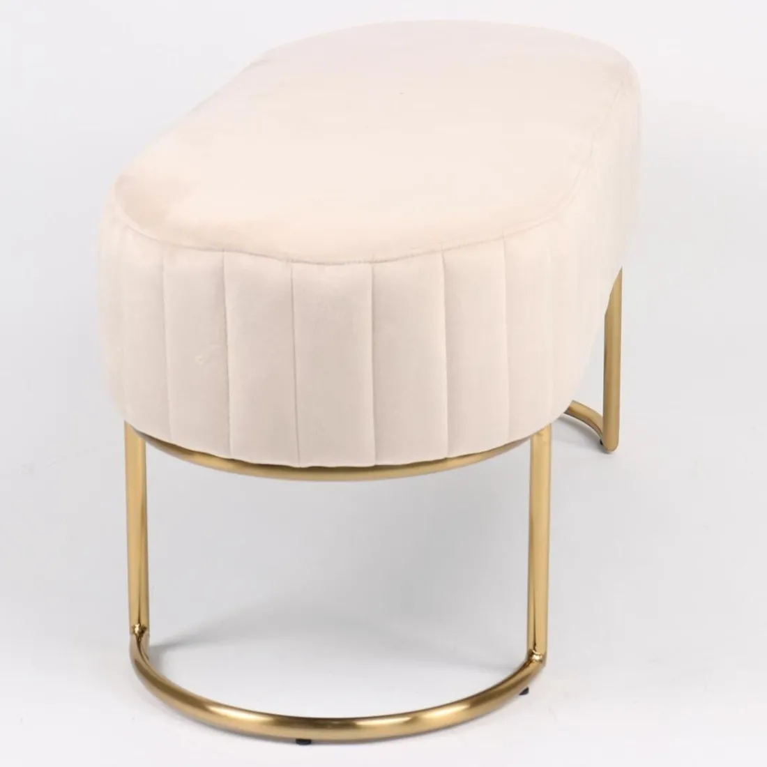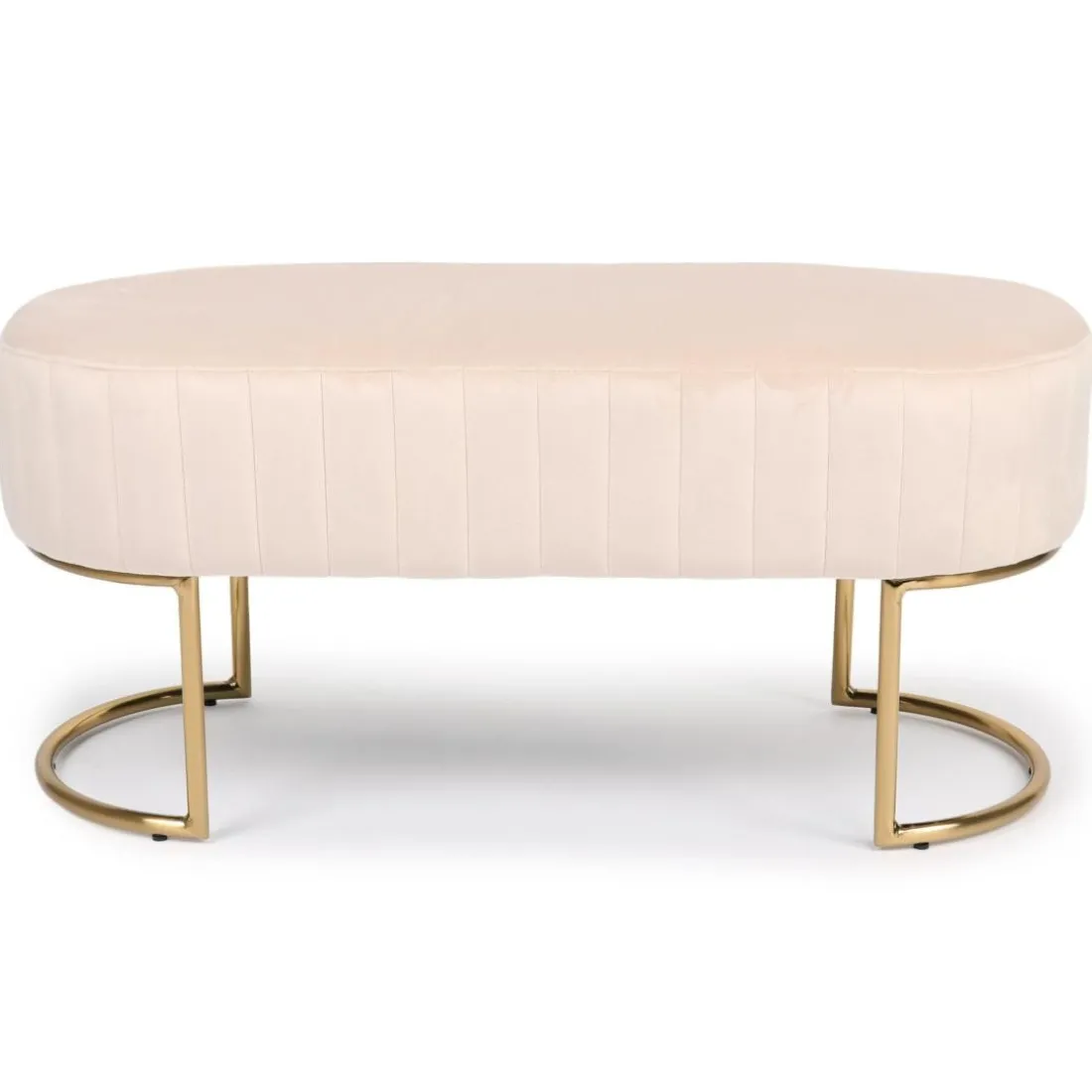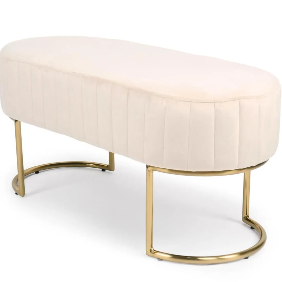 Caractéristiques Banquette élégante matelassée Philomena pieds métal doré et Velours Beige