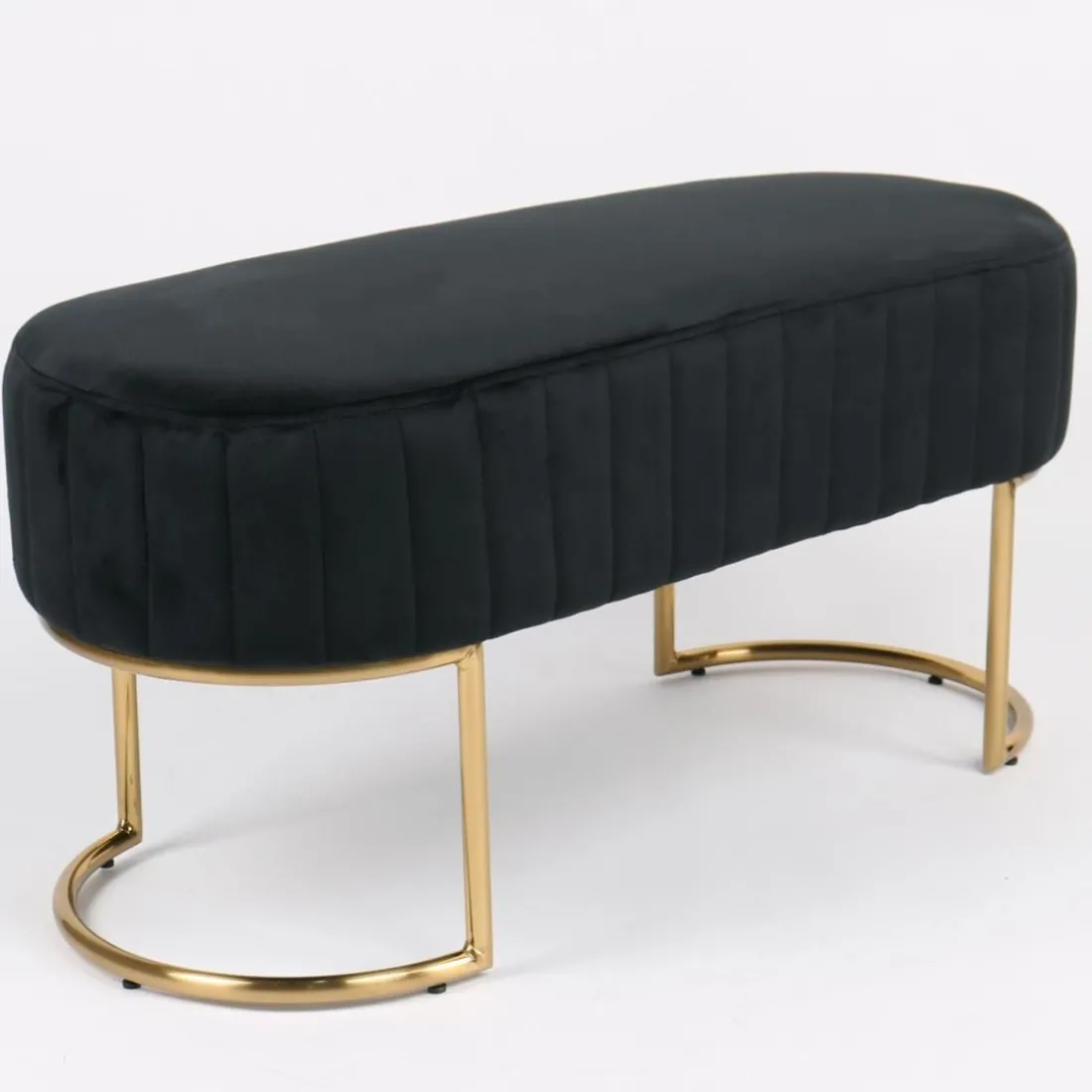 Caractéristiques Banquette élégante matelassée Philomena pieds métal doré et Velours Noir