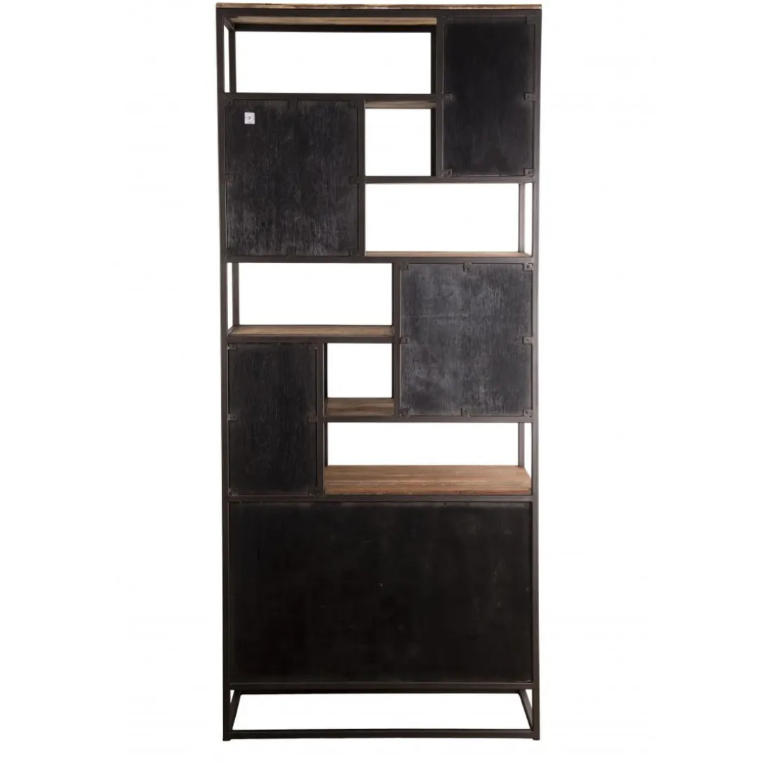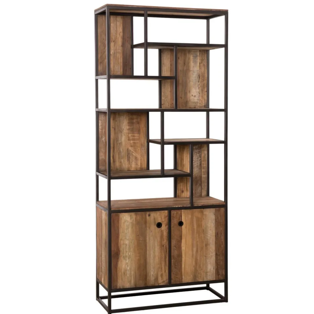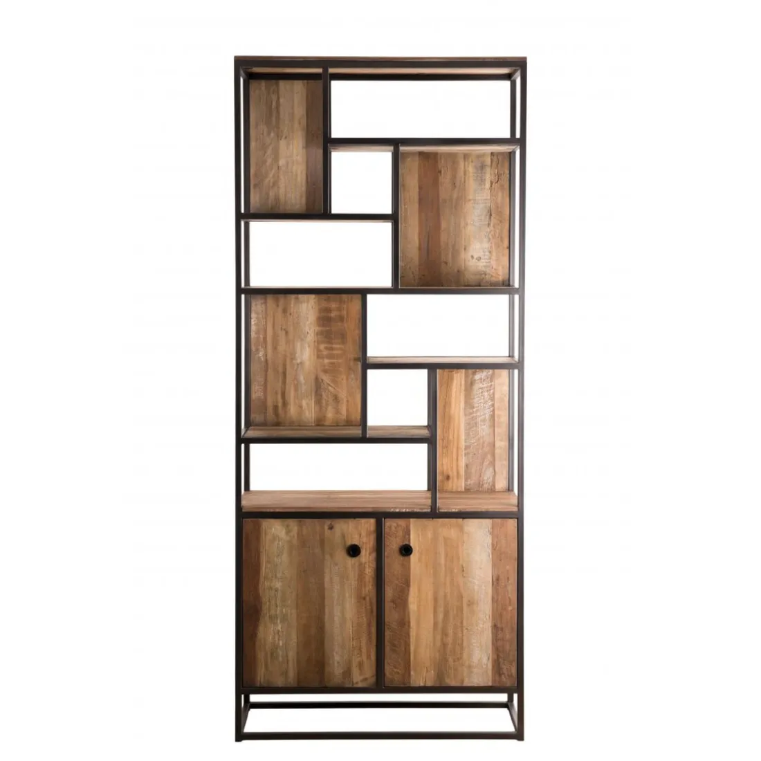 Caractéristiques Bibliothèque Haute ALIDA 2 Portes Et 10 Open Space Bois Teck Recyclé Acacia Mahogany Et Métal