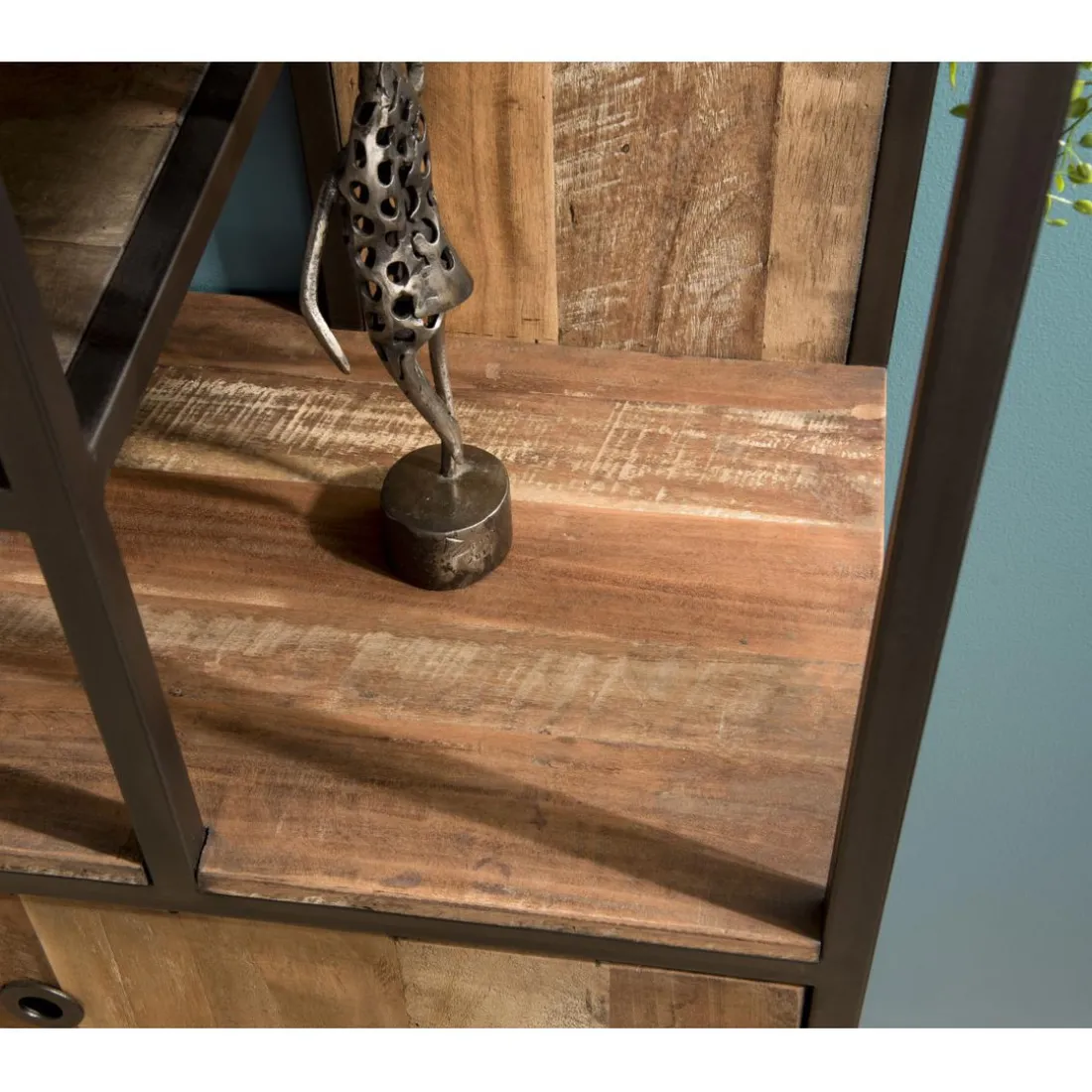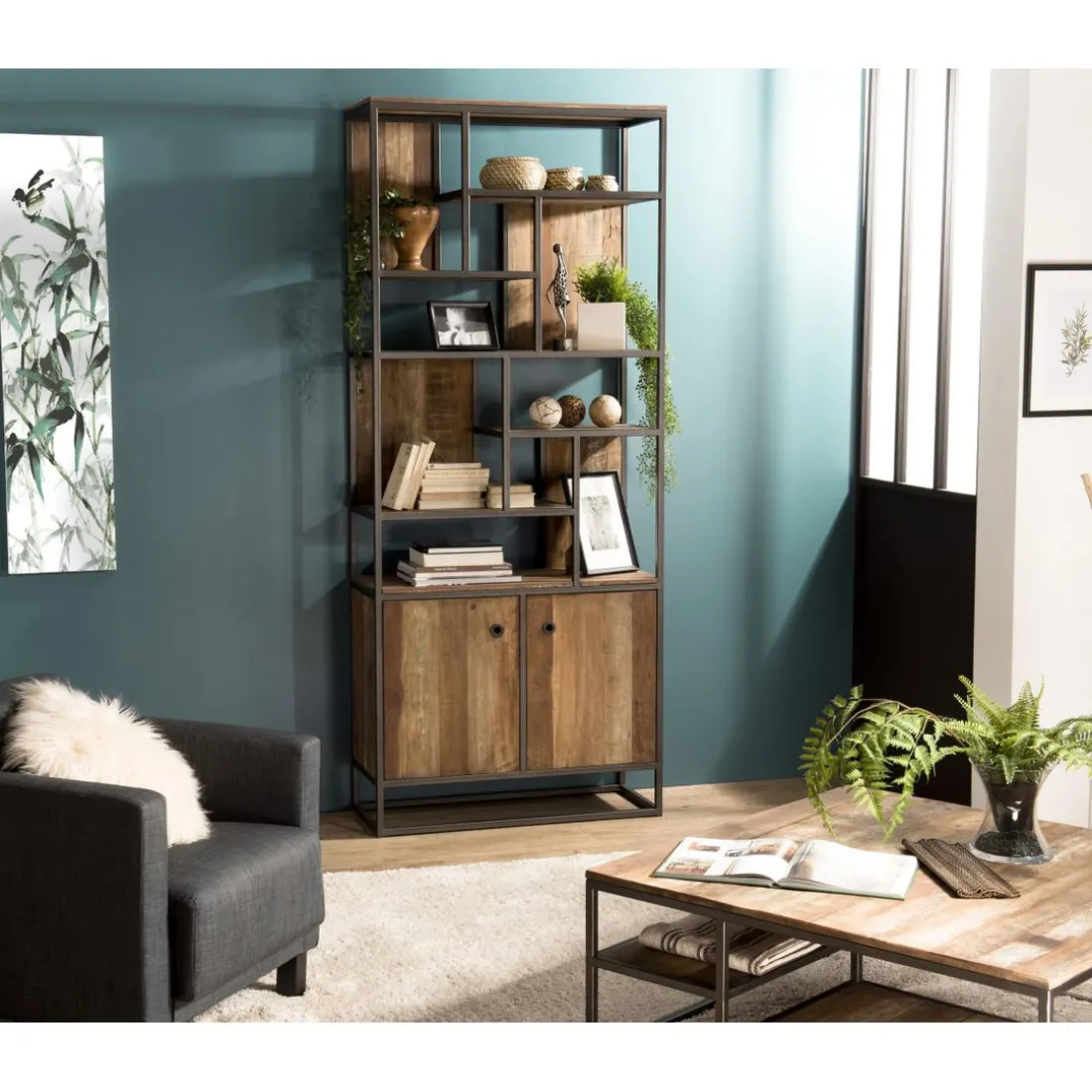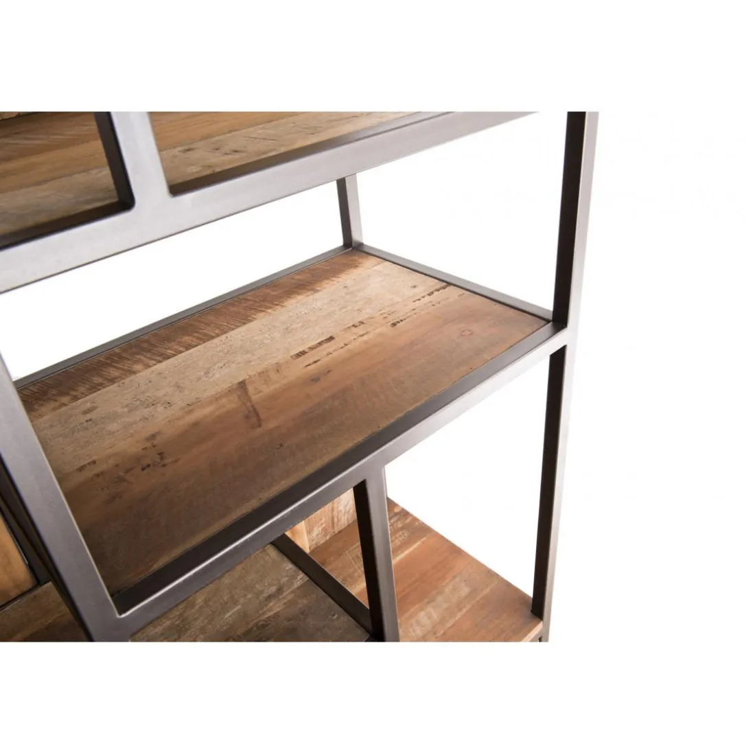 Caractéristiques Bibliothèque Haute ALIDA 2 Portes Et 10 Open Space Bois Teck Recyclé Acacia Mahogany Et Métal