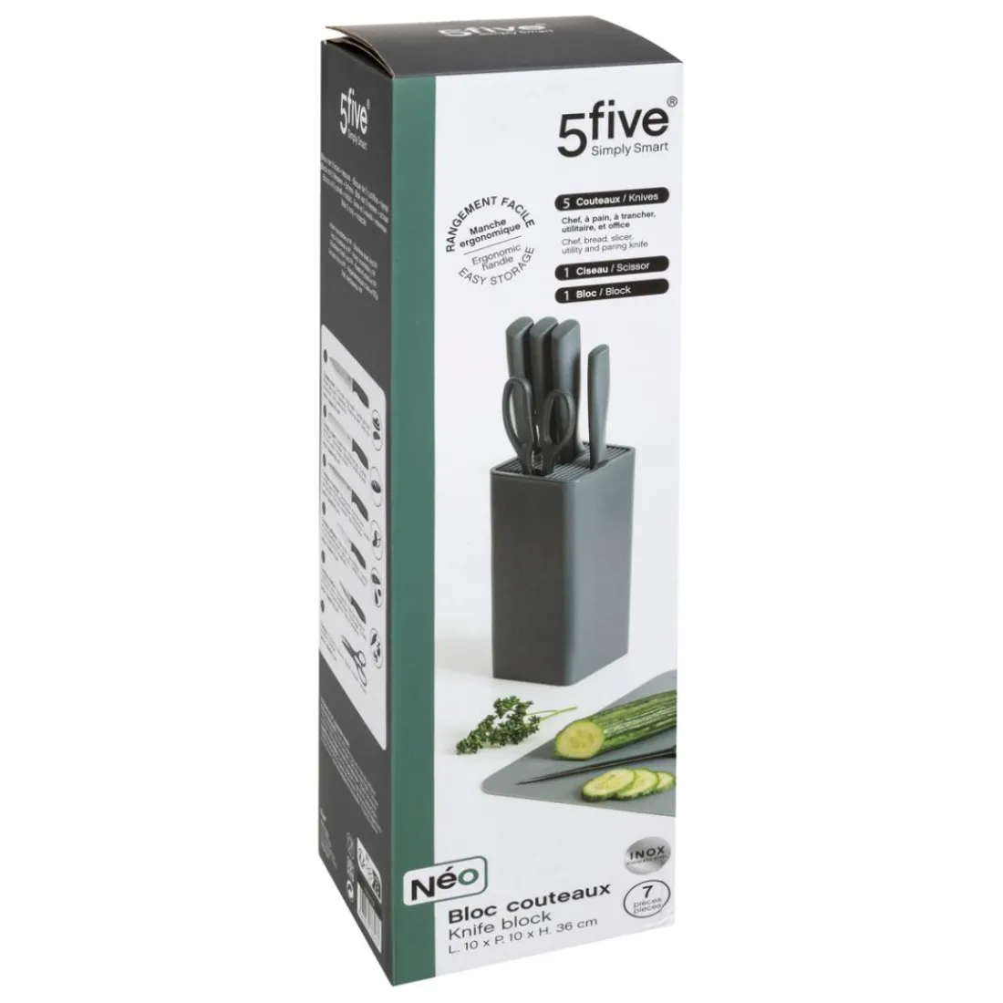 Caractéristiques Bloc de 5 couteaux et ciseau « Néo » gris