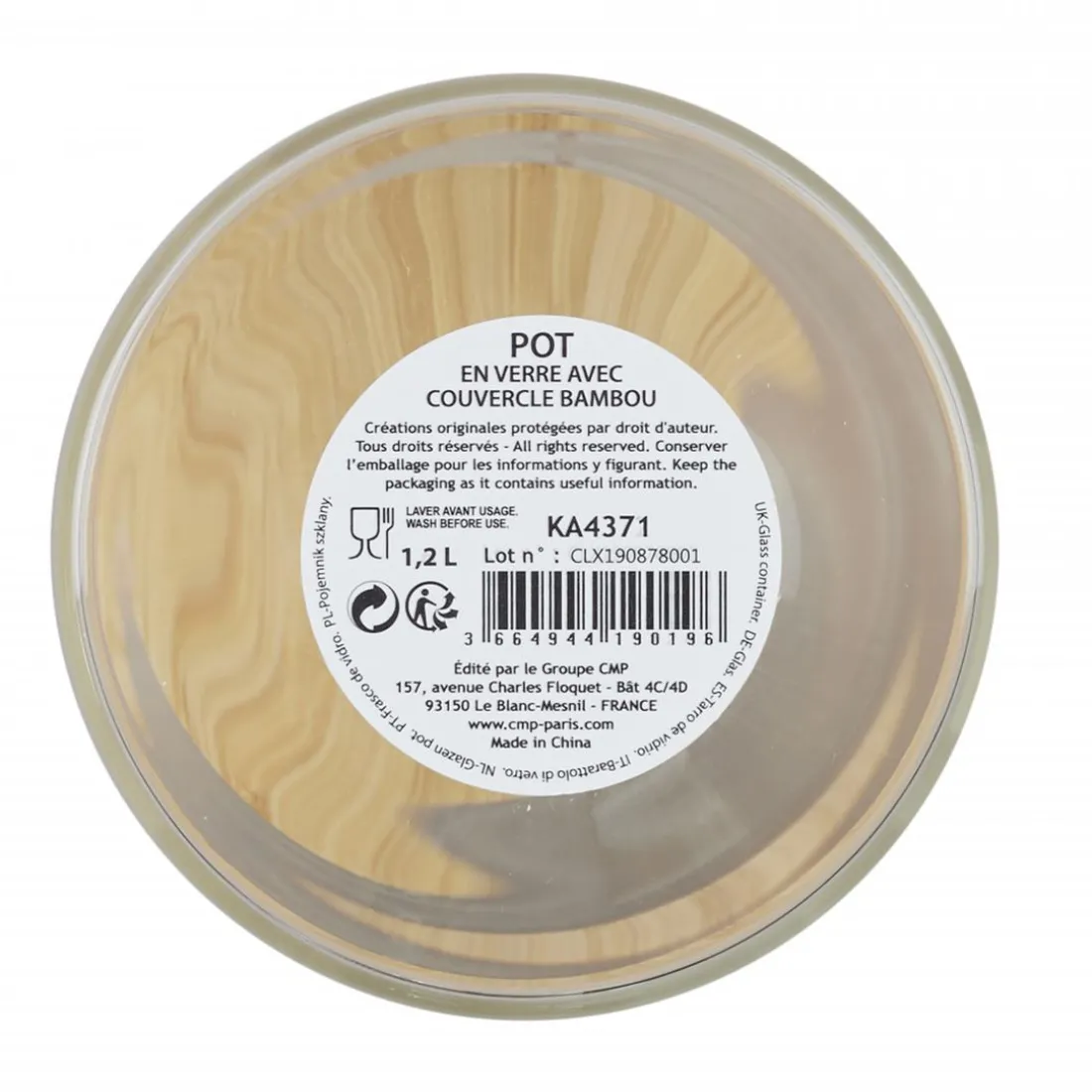Caractéristiques Bocal en verre et bambou 1.2L CIGLA