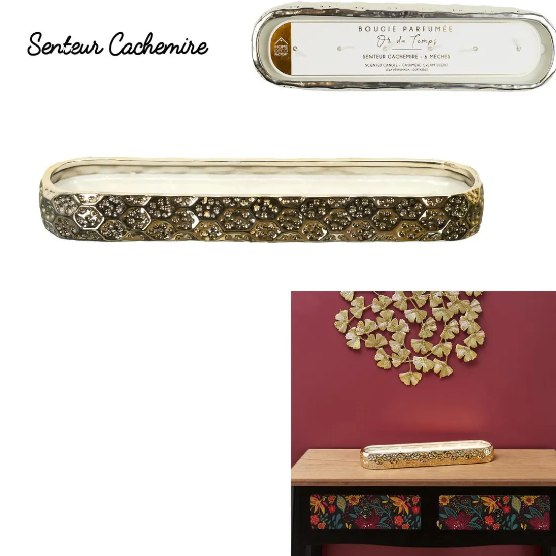 Optez pour cette Bougie Parfumée Céramique Or Du Temps 6 Mèches M4 et sa senteur cachemire pour profiter d’un intérieur au doux parfum.