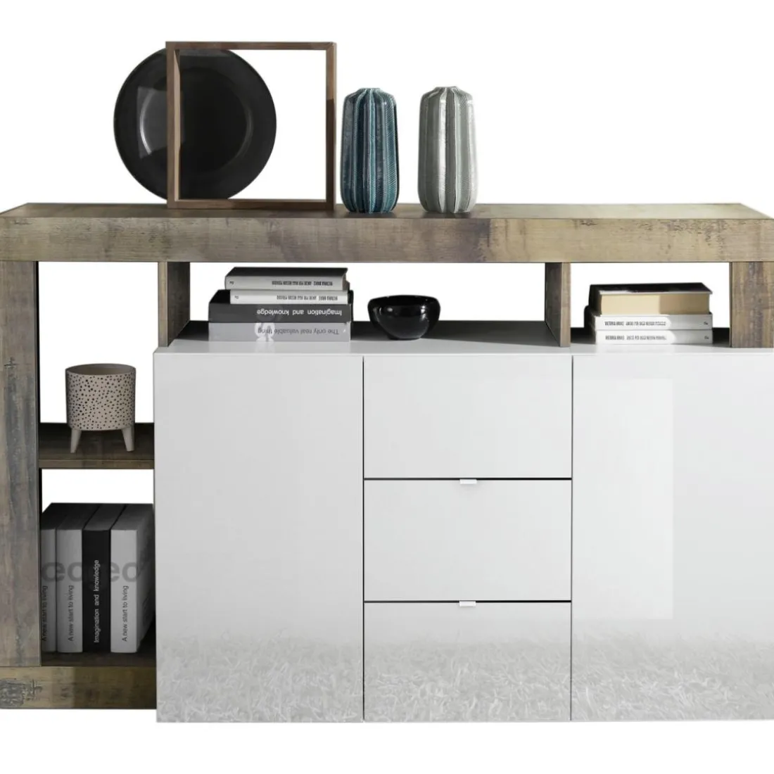 Caractéristiques Buffet 2 portes et 3 tiroirs décor chene et laqué blanc