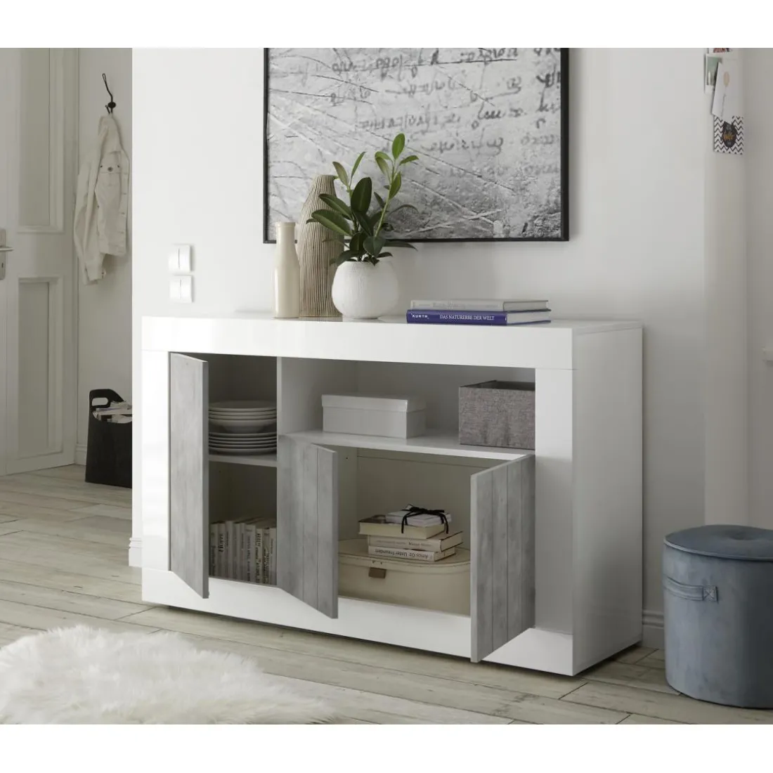 Caractéristiques Buffet 3 portes battantes blanc laqué et cement