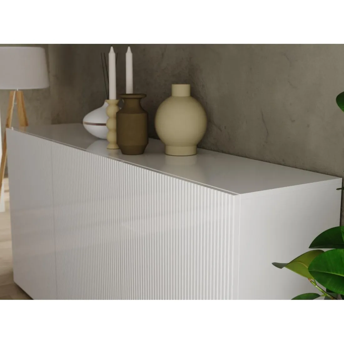Caractéristiques Buffet 3 portes RIO blanc laqué brillant