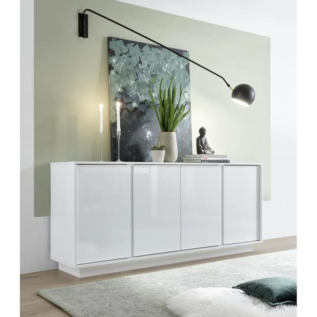 Le Buffet 4 portes ICE, de marque 3S. x Home, est un meuble authentique qui apporte une touche d’élégance à votre intérieur. Laquée en blanc brillant, sa finition présente une brillance qui reflète la lumière et rend votre espace plus lumineux. Le buffet comporte quatre portes, offrant de nombreux espaces de rangement pour votre vaisselle et autres accessoires. Son design simple et épuré lui permet de s’intégrer facilement dans tous les styles de décoration.
