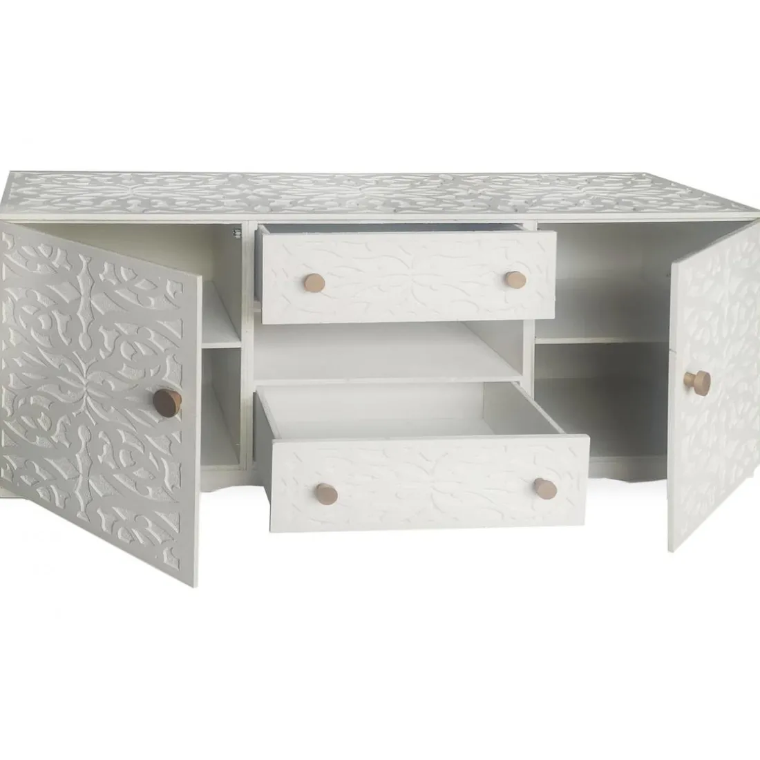 Composé de plusieurs espaces de rangement, ce Buffet avec moulures PORTO Bois Blanc et Or a tout pour plaire. Il réunit une niche, deux tiroirs et deux portes battantes. Sa couleur est pure, séduisante, neutre et d’une élégance imparable.