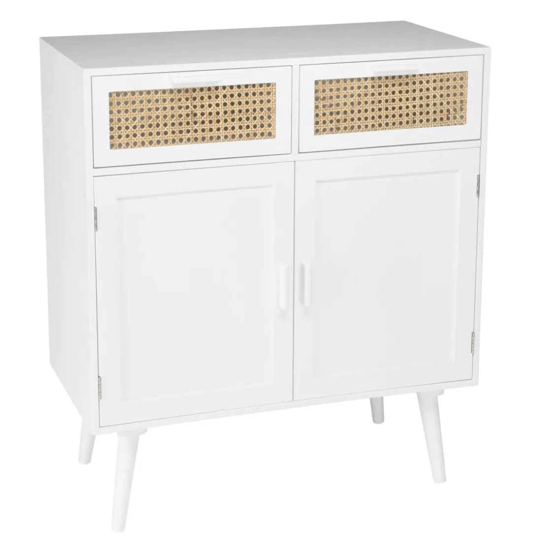 Caractéristiques Buffet blanc 2 portes 2 tiroirs cannage naturel