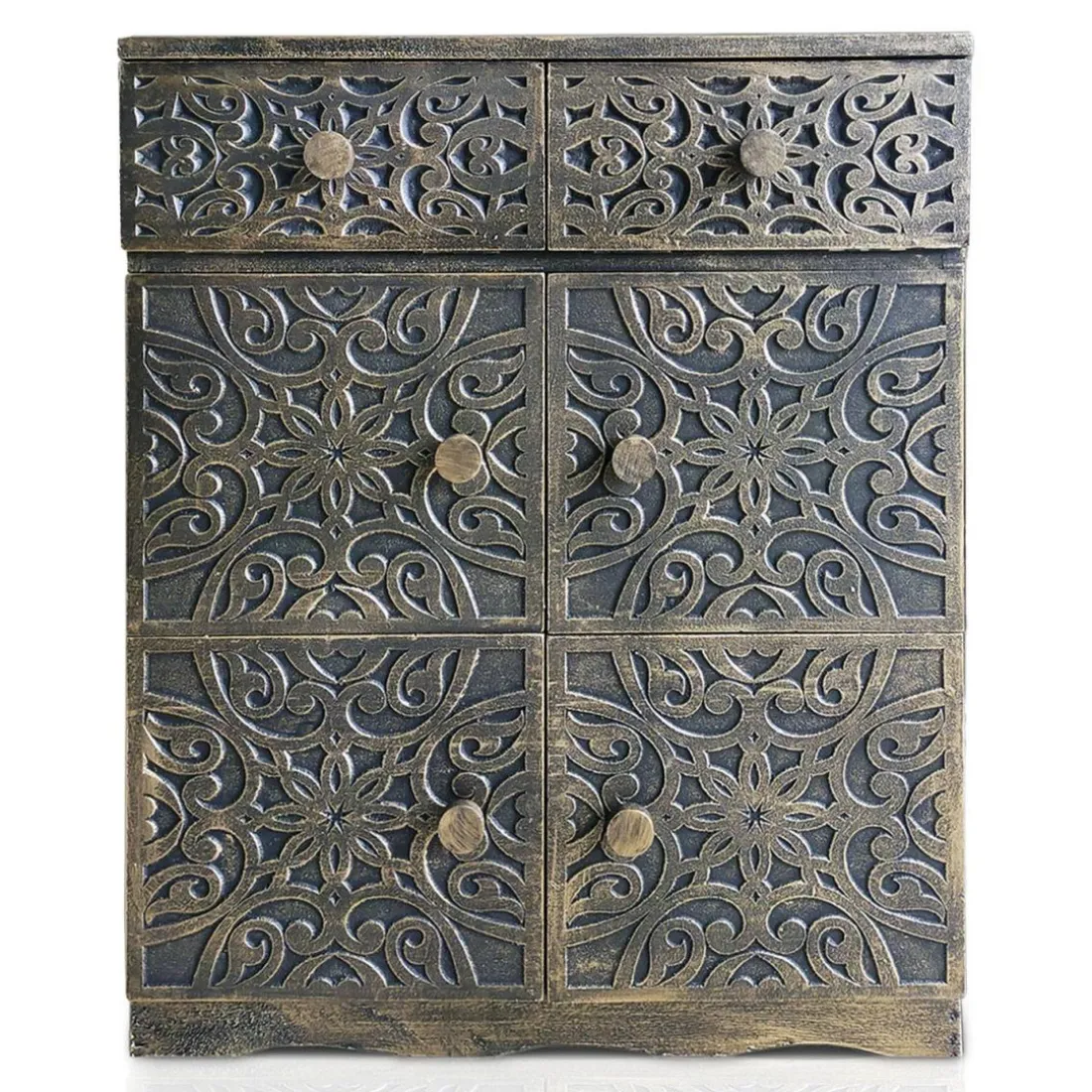 Caractéristiques Buffet bois sculpté style oriental 6 portes L70cm Matana Bronze patiné
