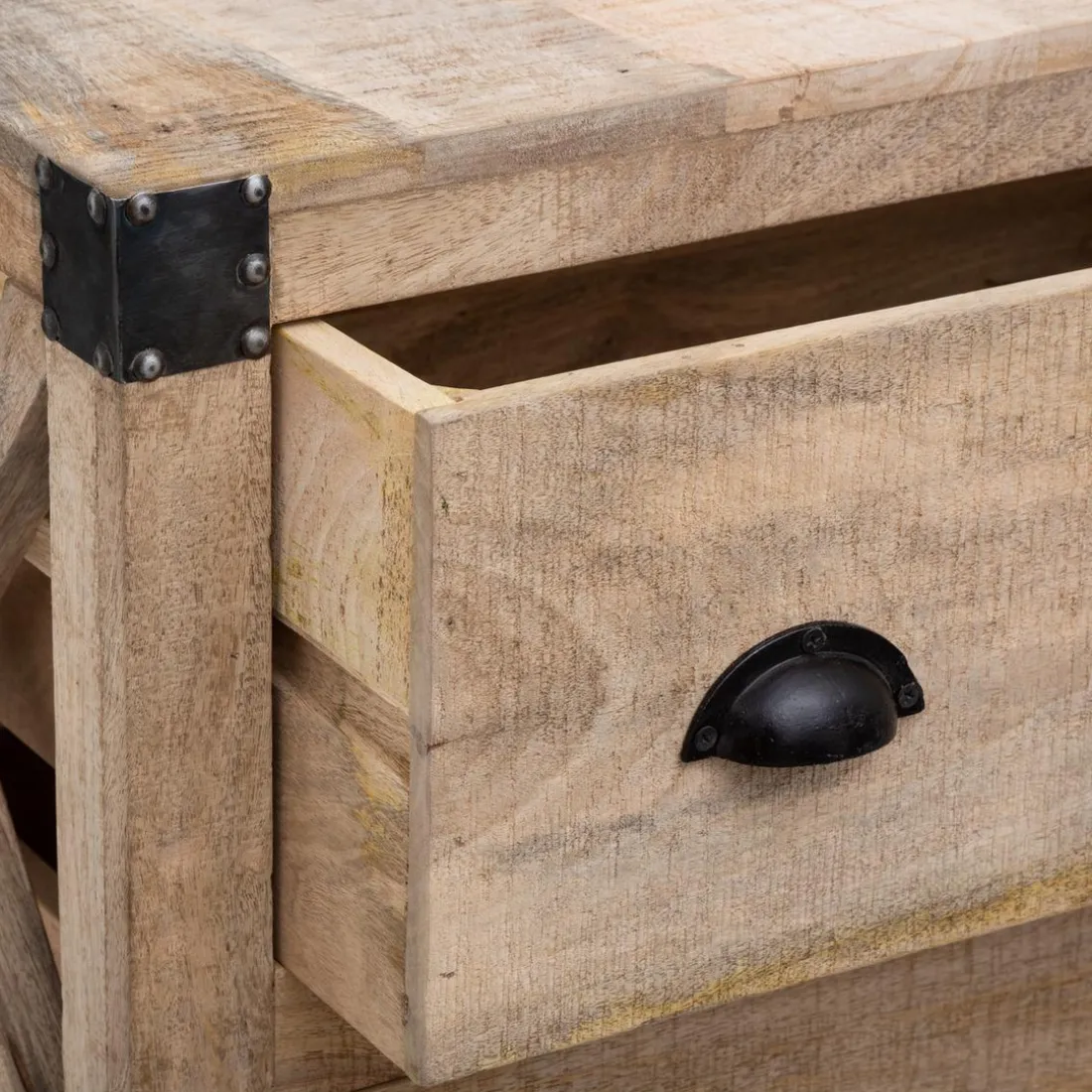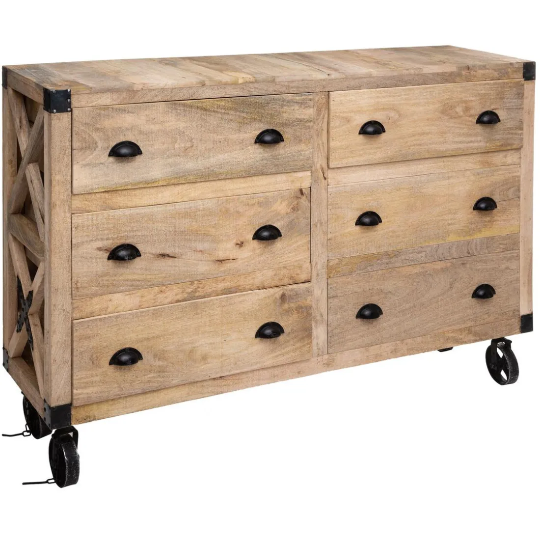 Craquez pour le design vintage et industriel de ce Buffet SILAS. Conçu en bois de manguier et doté de détails métalliques noirs, il a de quoi séduire. Pratique, il met à disposition 6 tiroirs de rangement.