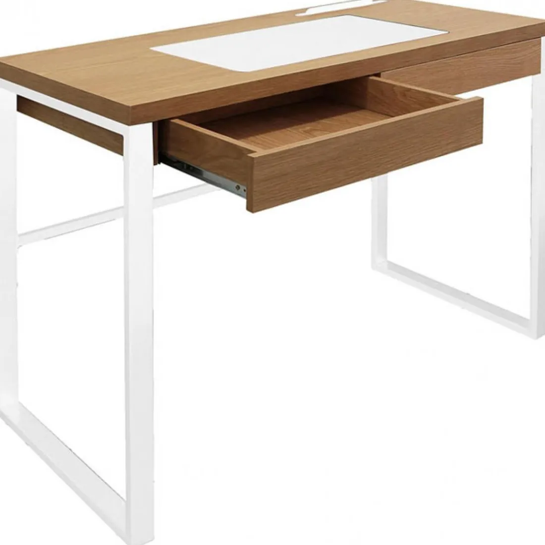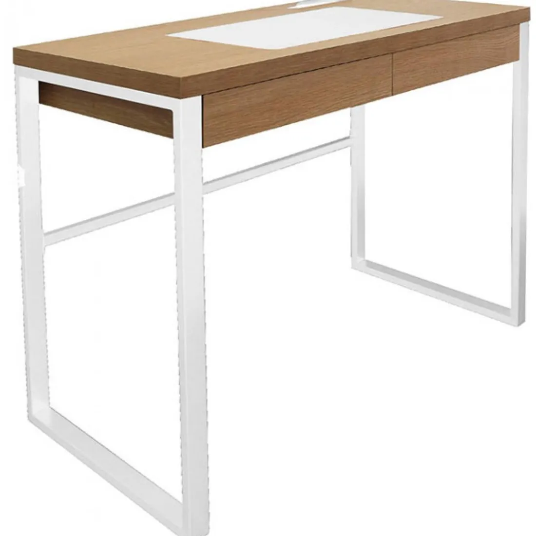 Caractéristiques Bureau à 2 Tiroirs en Bois Marron et Métal Blanc LUCIUS