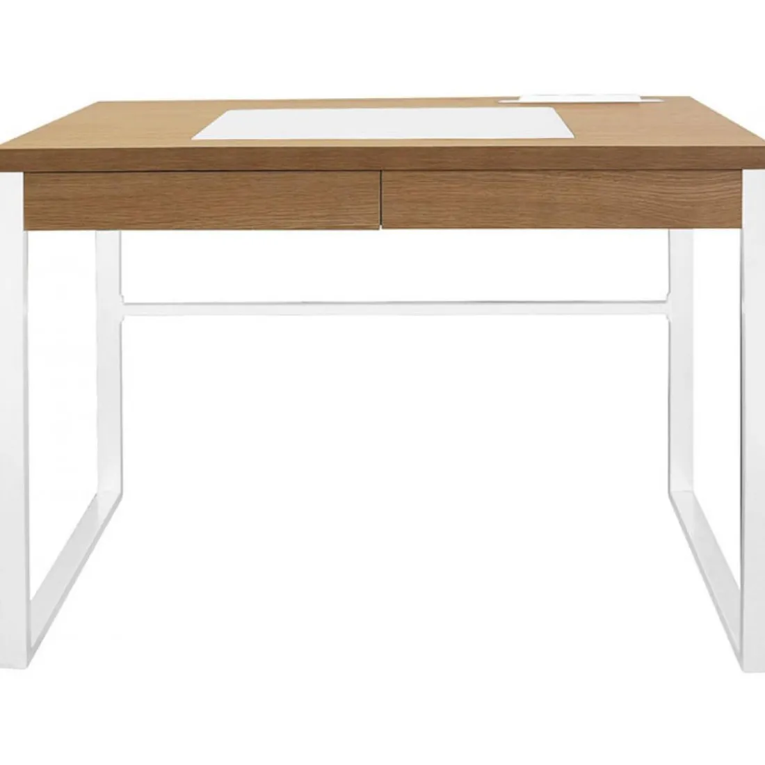 Le Bureau à 2 Tiroirs en Bois Marron et Métal Blanc LUCIUS est muni de 2 grands tiroirs très pratiques pour ranger vos papiers. Son style très épuré nous fait de l’oeil. Ce bureau apportera une touche sobre et élégante à votre intérieur. On adore le mélange du plateau en bois et du piétement en métal blanc. Le petit plus : le tapis antidérapant intégré.