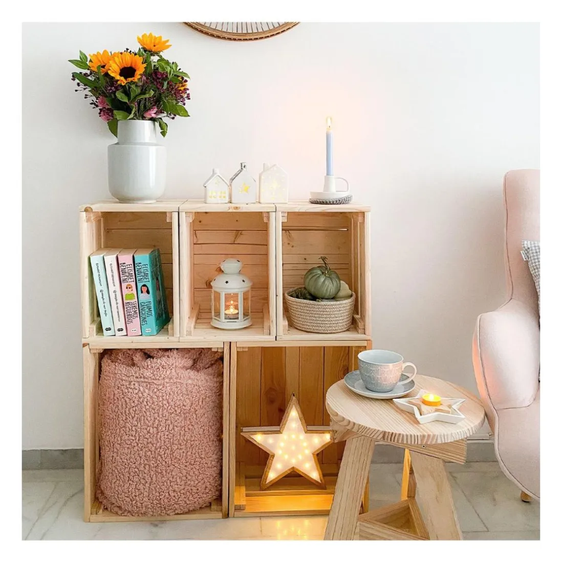 Cette caisse en pin massif modulable et empilable de la marque Calicosy ajoute une touche industrielle à votre espace de travail. Sa couleur beige s’intégrera parfaitement à tout style de décoration. De dimensions 38,5 cm de longueur et 28 cm de hauteur, elle est fabriquée à partir de panneaux de particules de haute qualité pour une durabilité accrue. Ses détails bien travaillés, visible sur l’image fournie, ainsi que sa versatilité font de cette caisse l’accessoire parfait pour votre bureau.