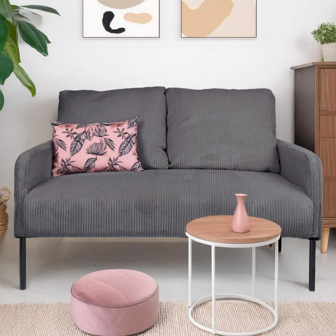 Caractéristiques Canapé 2 places moderne et élégant Manuelo Velours côtelé Gris foncé