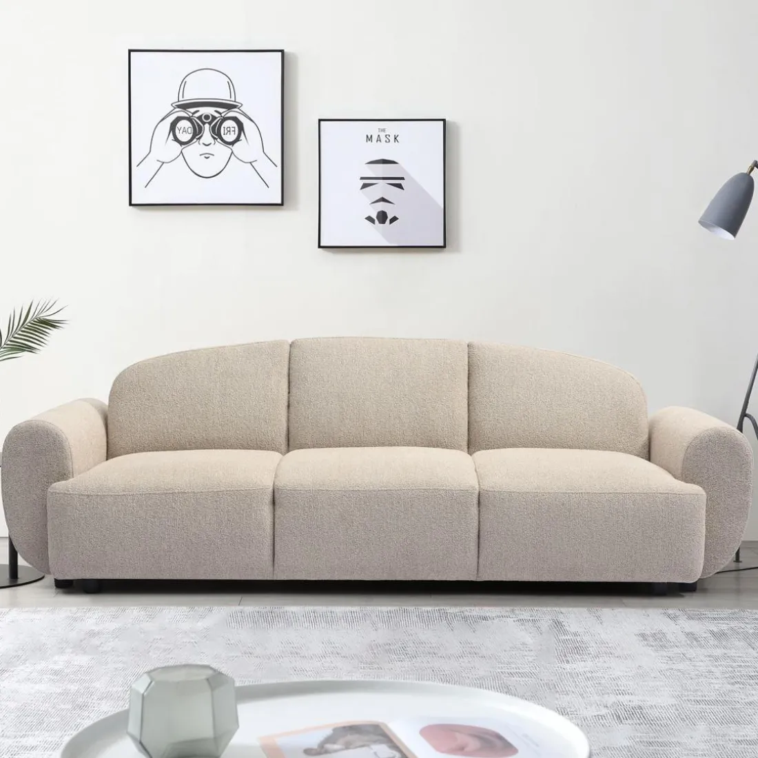 Caractéristiques Canapé 3 places convertible dossier et accoudoirs arrondis Oliver Tissu texturé Beige