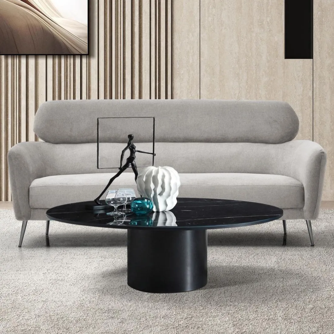 • Design intemporel avec accoudoirs incurvés