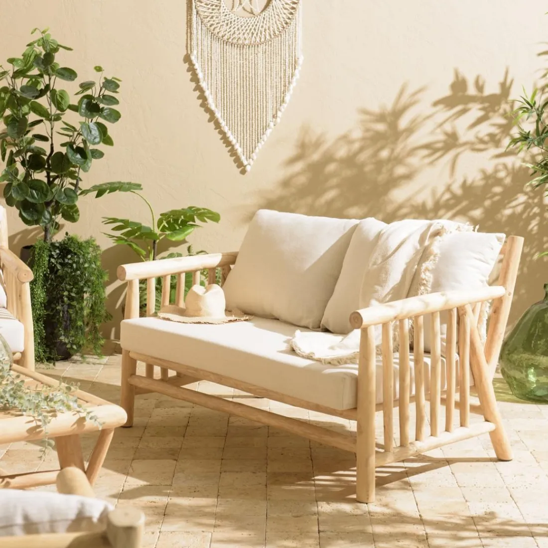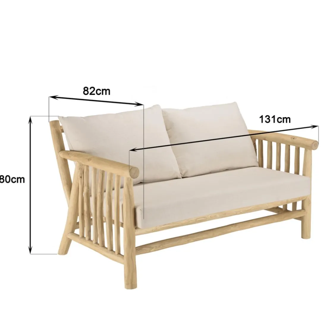 Caractéristiques Canapé BORNEO 2places en branches de teck naturel