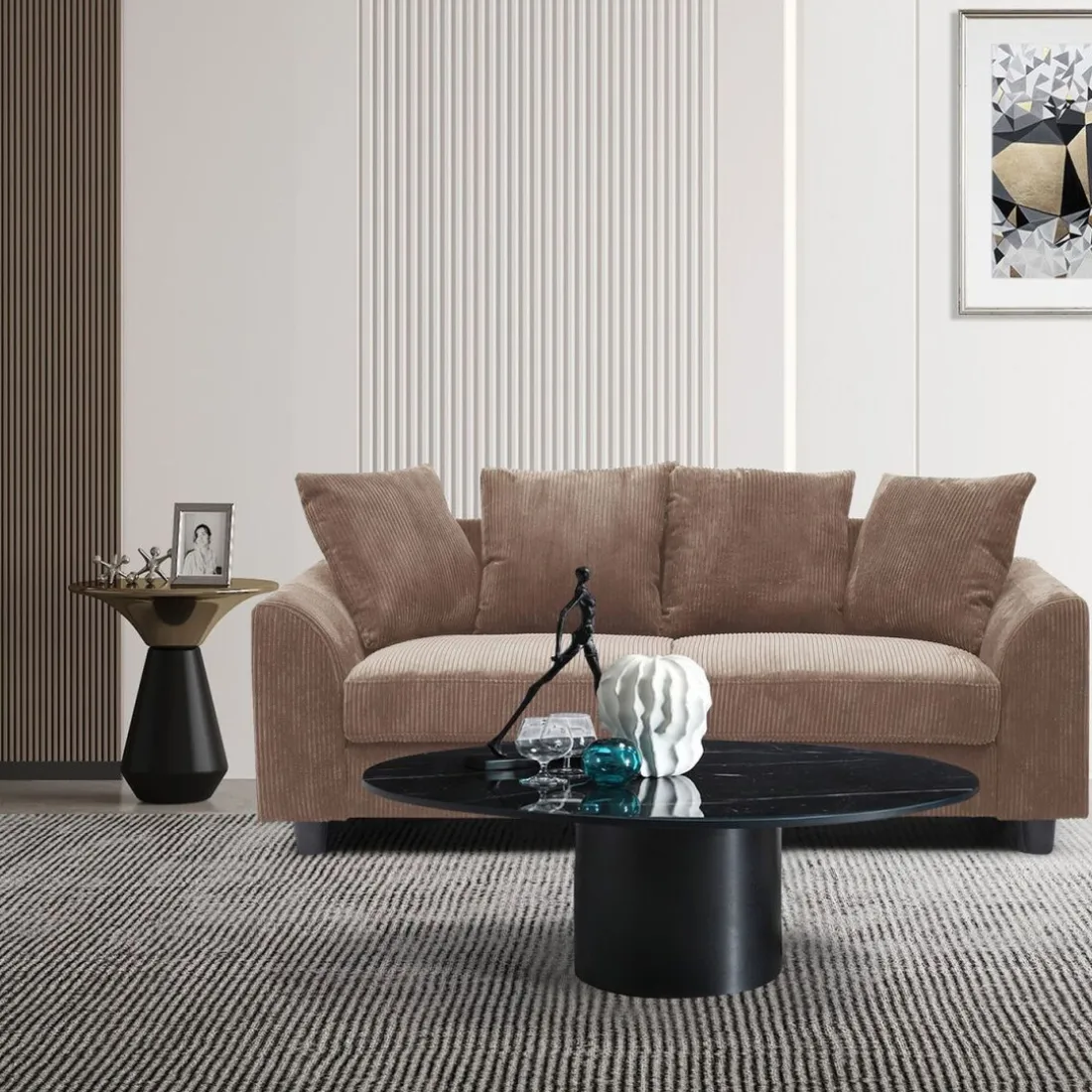 Le Canapé contemporain 3 places Mozart de qualité supérieure de la marque renommée 3S. x Home est un ajout luxueux à toute maison. Ce canapé présente un revêtement en velours côtelé marron qui lui donne un look élégant et riche. Avec une longueur de 182 cm et une hauteur de 80 cm, ce canapé est assez grand pour accommoder trois personnes tout en étant compact pour s’adapter à n’importe quel espace de vie. La texture douce du velours côtelé ajoute à son confort, tandis que la couleur marron donne une ambiance chaleureuse et accueillante. Les détails comme les accoudoirs arrondis et les pieds élégants complètent son allure contemporaine.