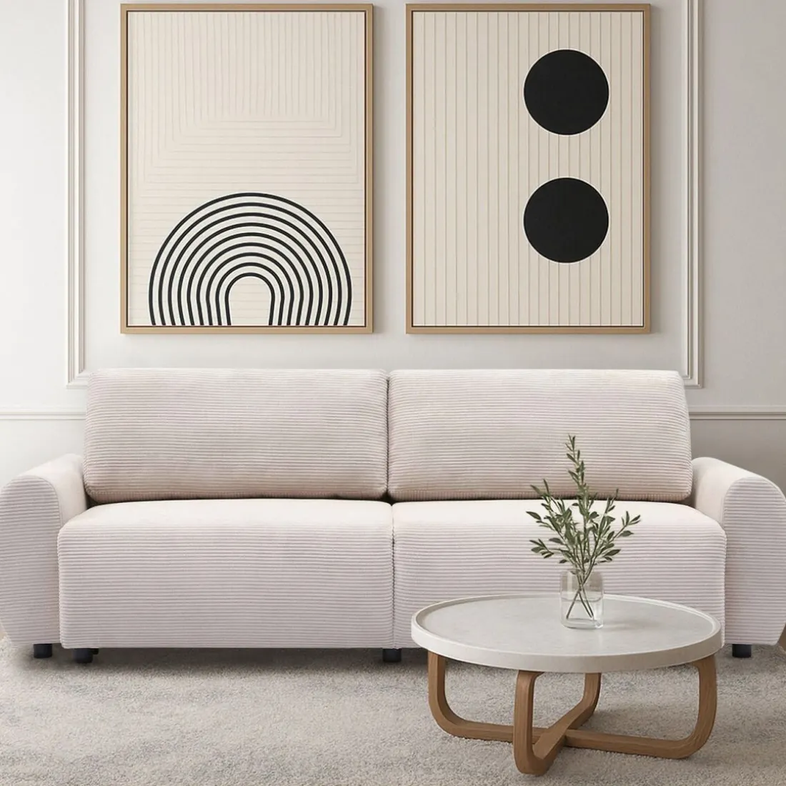 Caractéristiques Canapé convertible 3 places Traviata Velours côtelé Beige