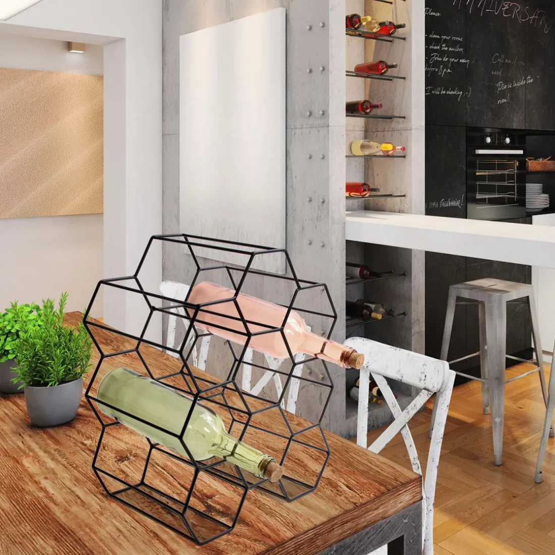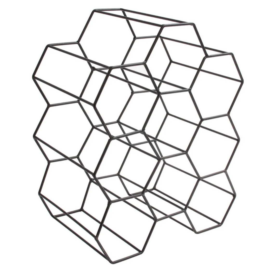 Avec un style moderne vous pouvez présenter vos plus belles bouteilles de vin avec ce casier filaire en forme de nids d’abeilles. Cet accessoire contemporaine apportera du cachet dans le séjour ou en cuisine tout en vous permettant de conserver et présenter horizontalement 9 bouteilles.