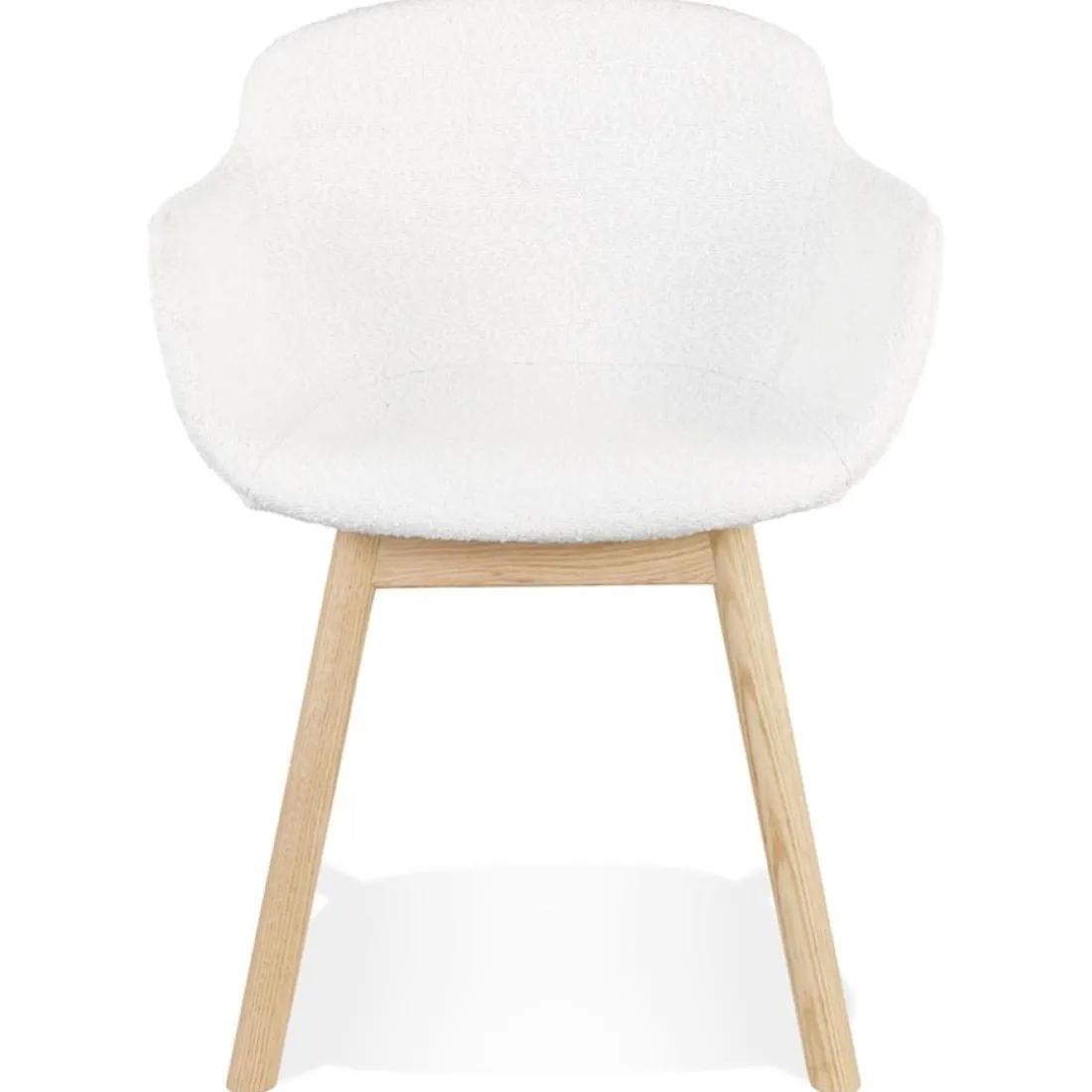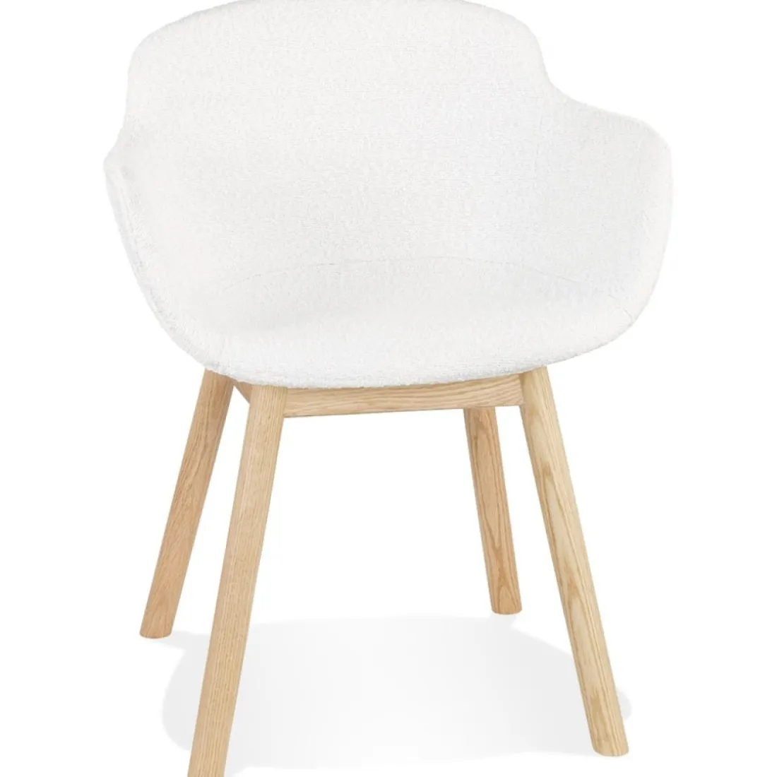 Caractéristiques Chaise avec accoudoirs ‘MOUTOU’ en tissu mouton blanc et pieds en bois naturel