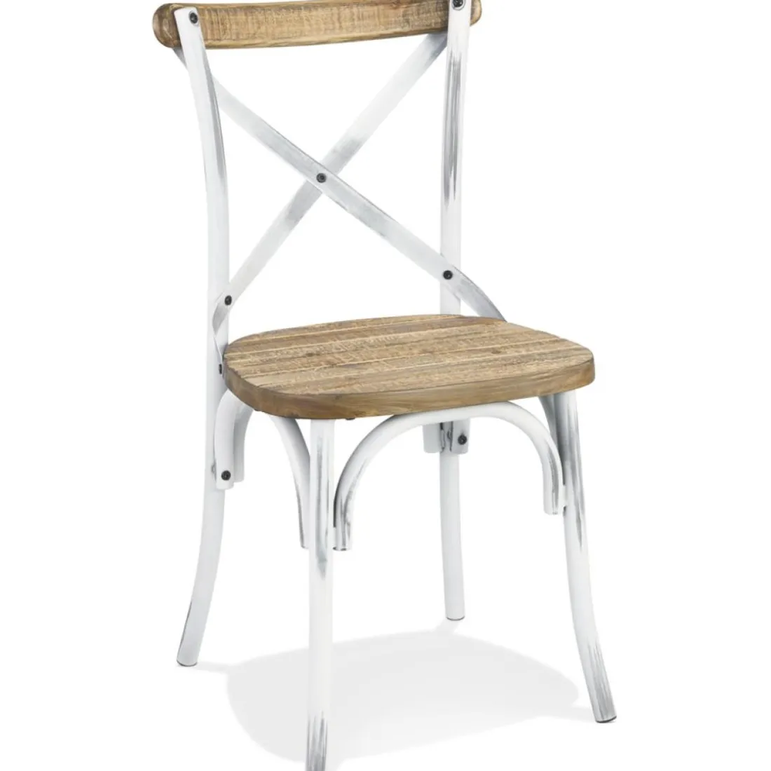 La Chaise de cuisine ‘RANCH’ de ALTEREGO est conçue dans un style rustique chic qui convient parfaitement à tous les intérieurs modernes. Son allure simple et son élégance sont amplifiées par sa finition Noyer effet vieilli, lui donnant une belle patine ancienne. Elle est majoritairement fabriquée à partir de bois mais son assise confortable est étonnamment en métal blanc. Avec une hauteur totale de 89 cm et une hauteur d’assise de 47 cm, cette chaise est le compromis idéal entre le design et le confort. Sa couleur blanche apporte une touche de fraîcheur à votre cuisine.