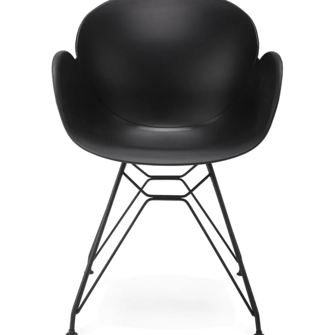 La chaise design ‘SATELIT’ de couleur noir de la marque Alterego s’inscrit dans une tendance en vogue. Avec une hauteur totale de 83cm et une hauteur d’assise de 44cm, elle offre un confort optimal. Sa structure et ses pieds en métal noir lui confèrent une robustesse incomparable. Le design minimaliste de cette chaise est accentué par son dossier léger et aéré formant de subtils losanges. Son assise légèrement incurvée offre un confort optimal. Sa couleur noir intense lui permet de s’intégrer facilement à de nombreux styles d’intérieur. Ce produit est classé dans la catégorie Fauteuil.