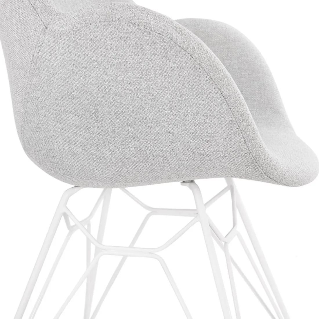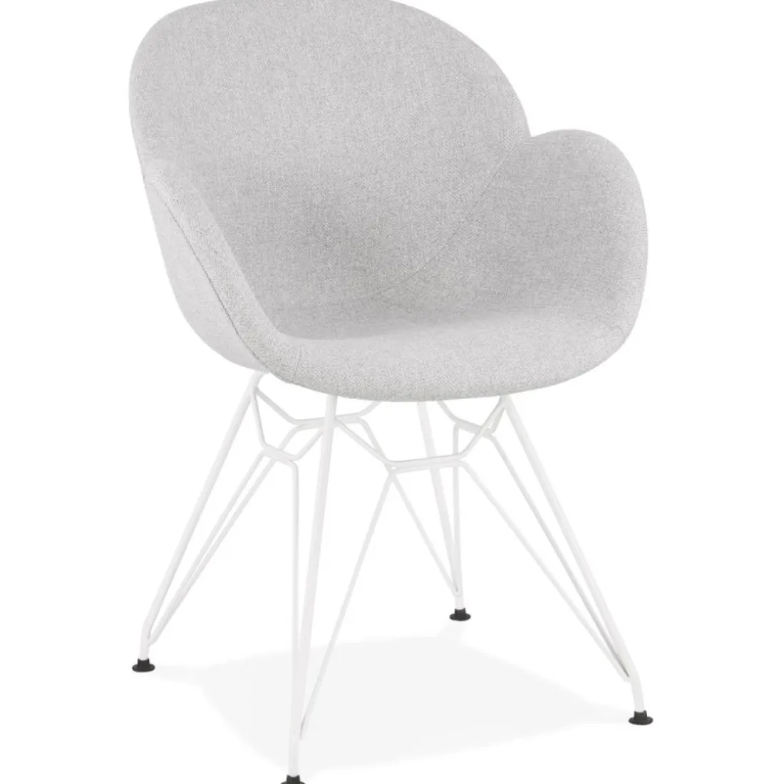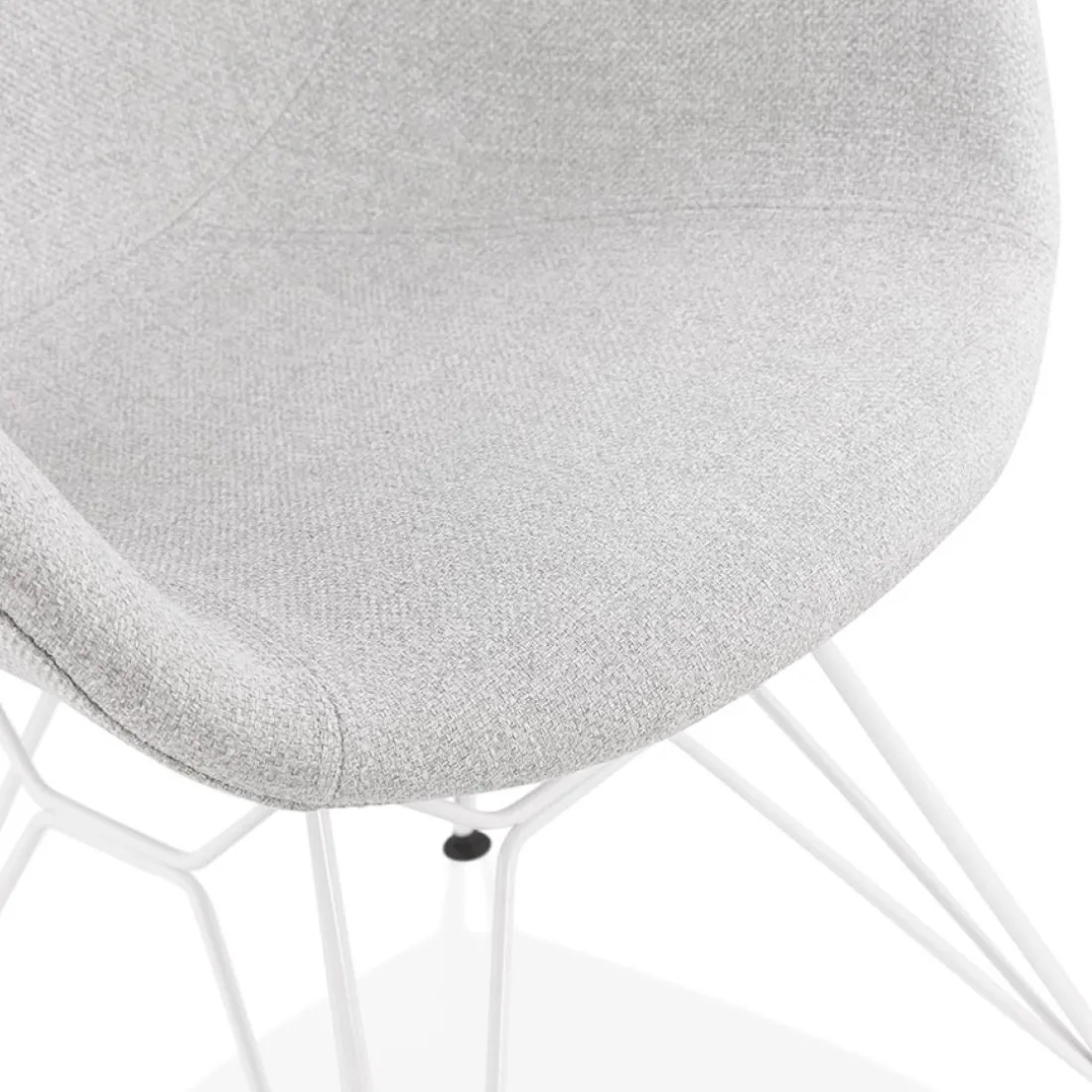 Caractéristiques Chaise moderne ‘ATOL’ en tissu gris clair avec pieds en métal blanc