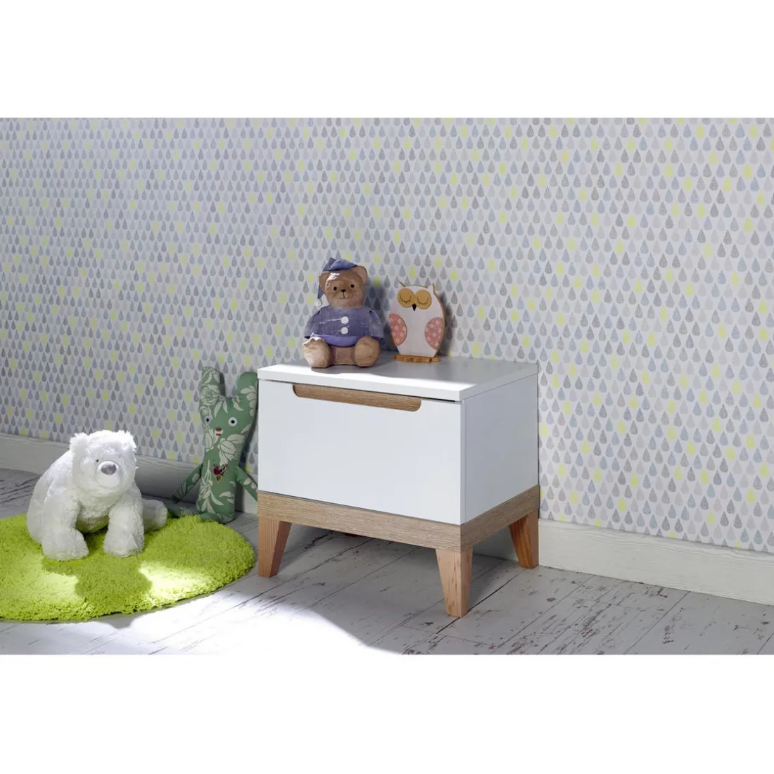 Cette table chevet est composée d’un tiroir sur coulisses métalliques avec freins pour plus de sécurité.