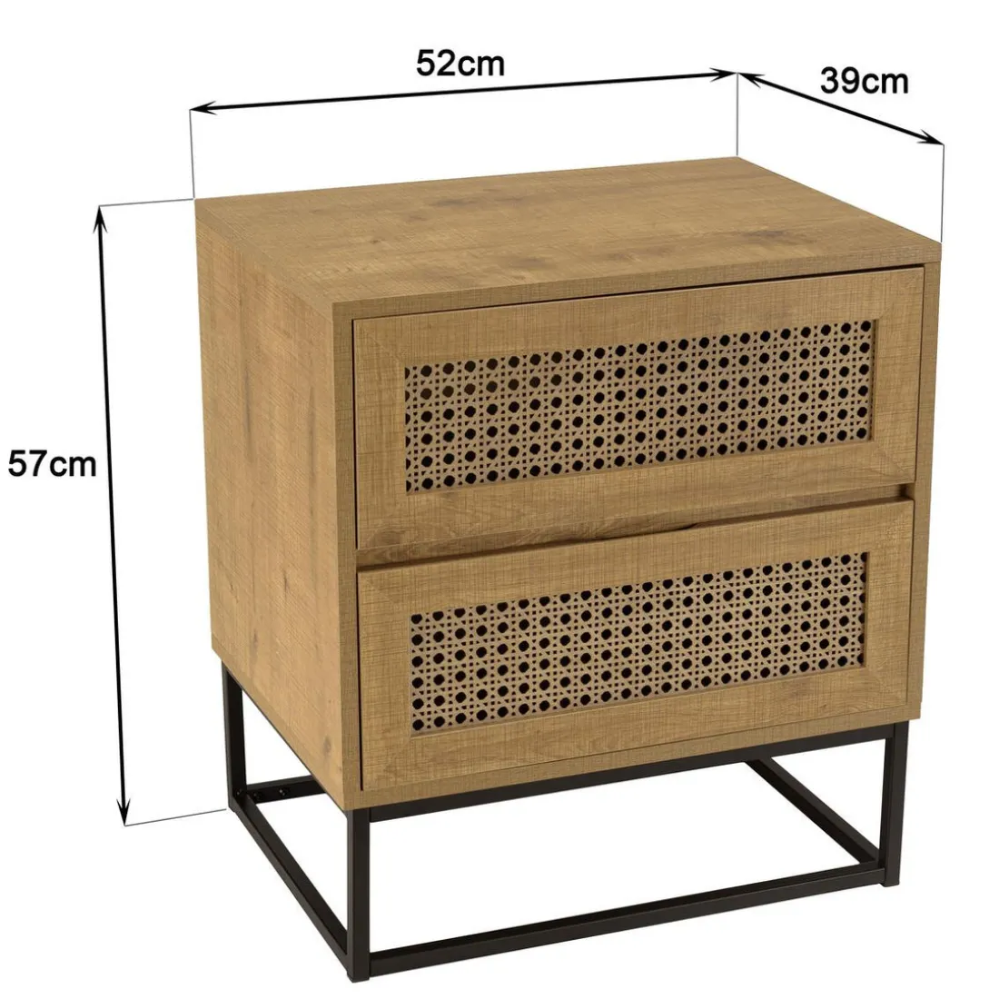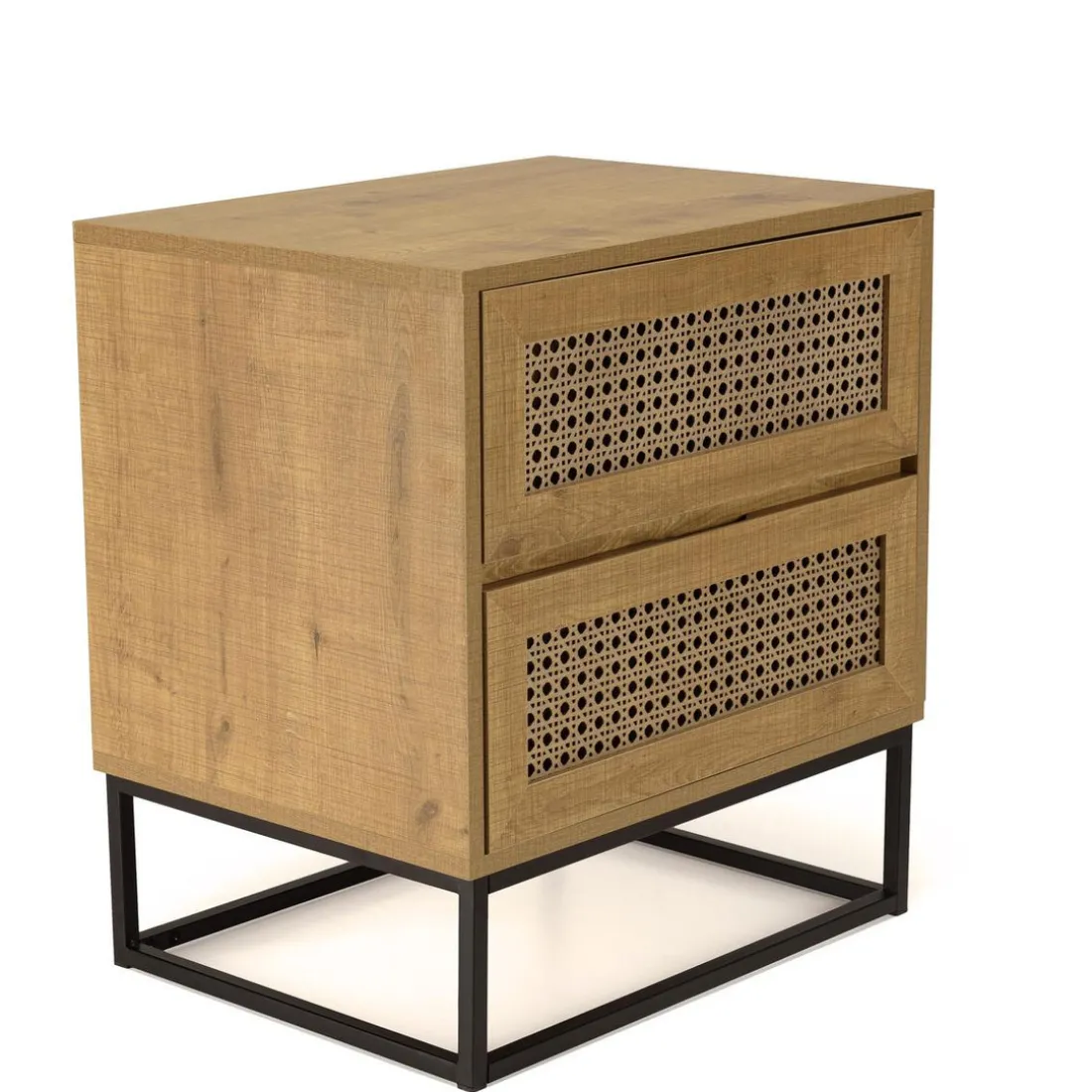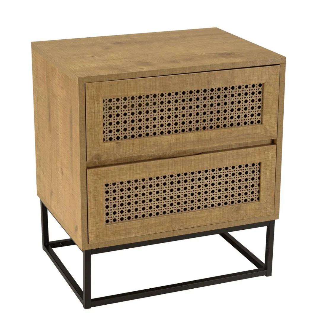 Caractéristiques Chevet marron 2 tiroirs effet cannage pieds métal noir CHARLIE