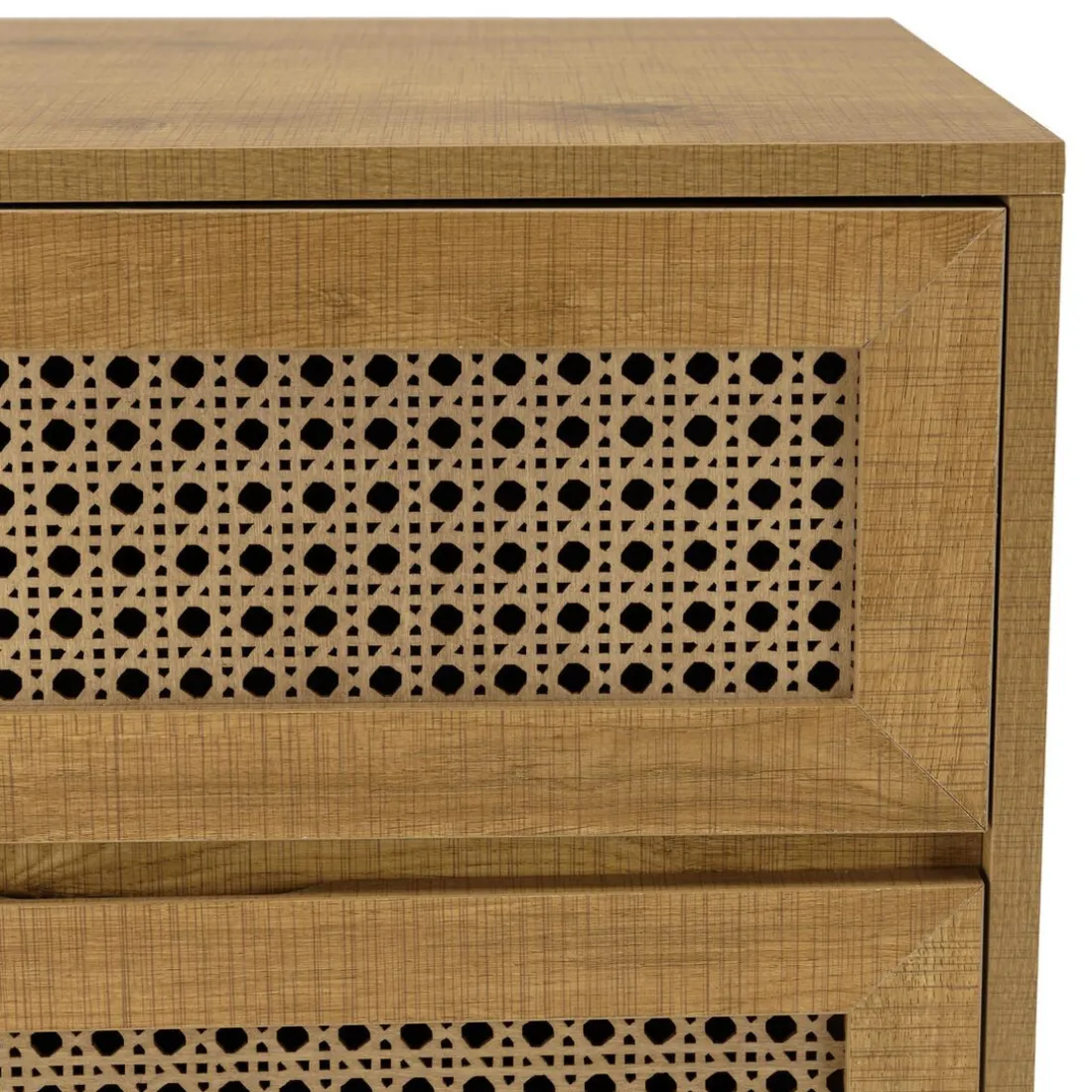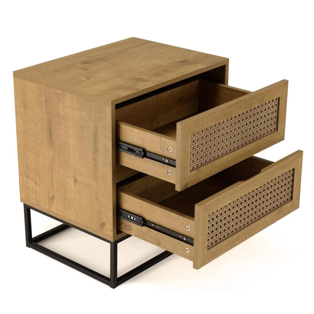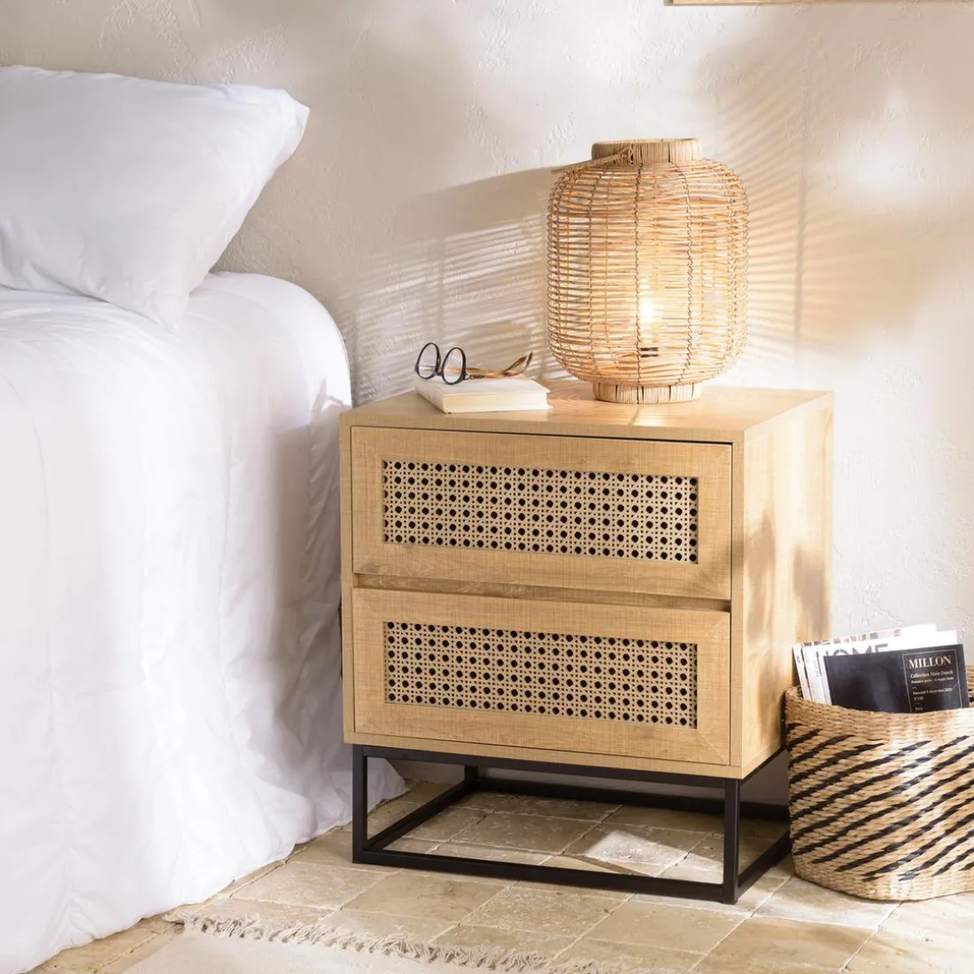 Caractéristiques Chevet marron 2 tiroirs effet cannage pieds métal noir CHARLIE