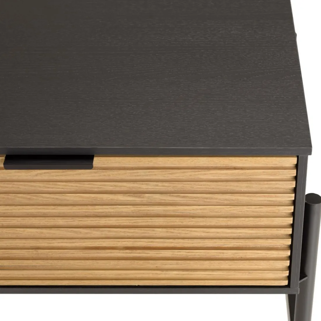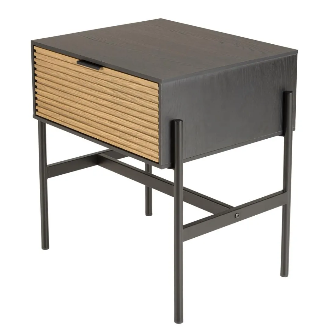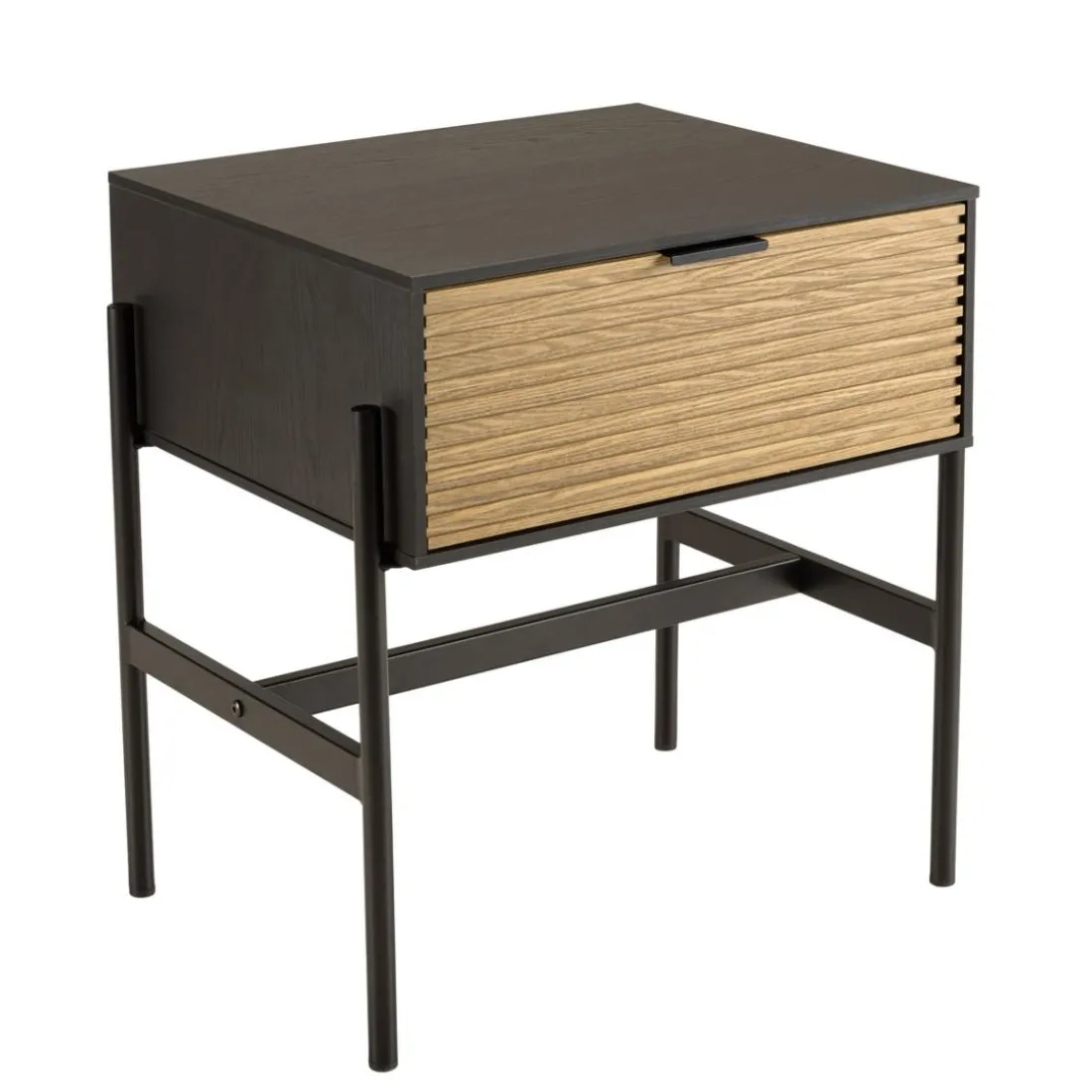 Caractéristiques Chevet marron et noir 1 tiroir Pin pieds métal noir