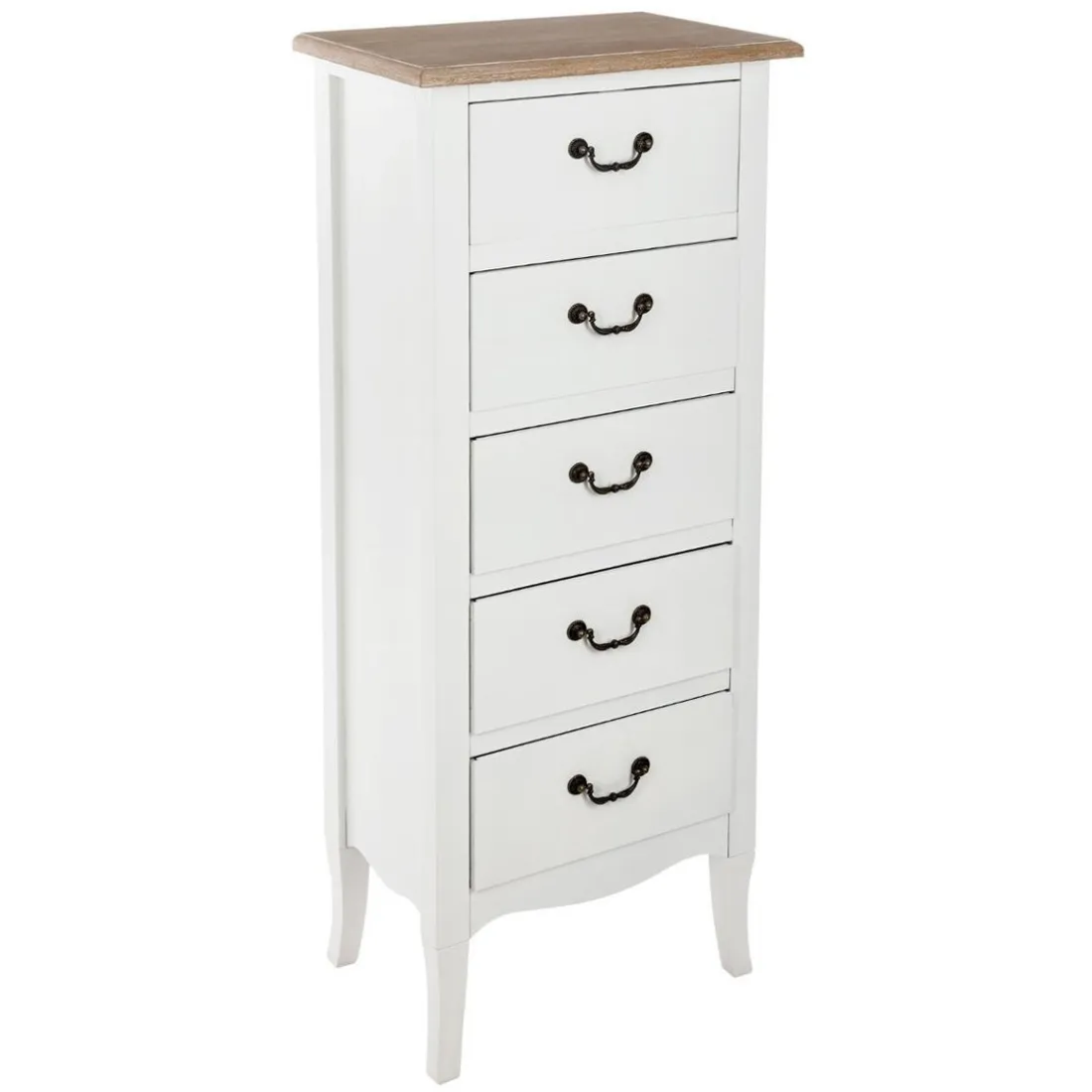 Organisez votre chez vous avec ce Chiffonnier Naturel CHRYSA 5 Tiroirs pratique au style romanesque.