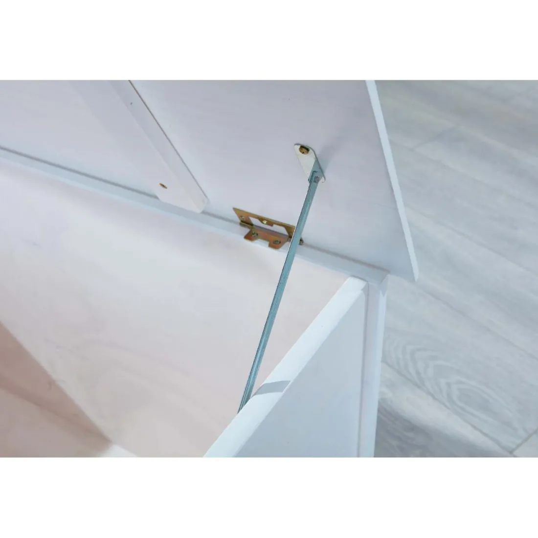 Ce Coffre à jouets blanc DEMELI est très pratique et fonctionnel. Disposant d’un spacieux compartiment, elle permet de ranger jouets, livres, ainsi que divers articles de votre choix. Composée de bois de pin massif, elle vous assure une robustesse à toute épreuve au fil du temps.
