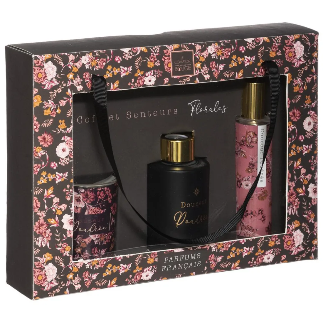 Détail Dimensions : Bougie : D. 5 x H. 6 cmDiffuseur : D. 5 x H. 8,5 cmSpray : D. 3 x H. 12,2 cm