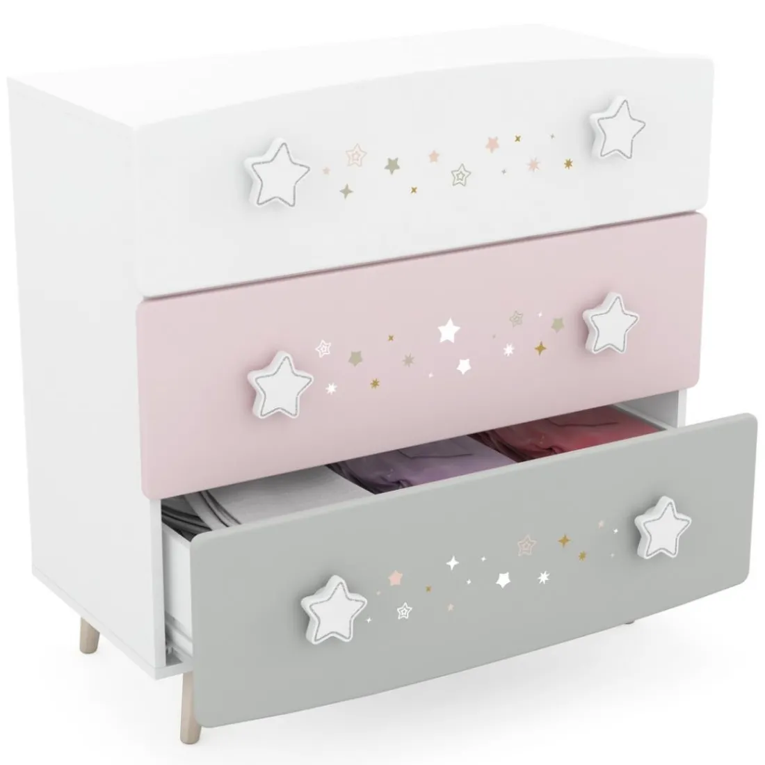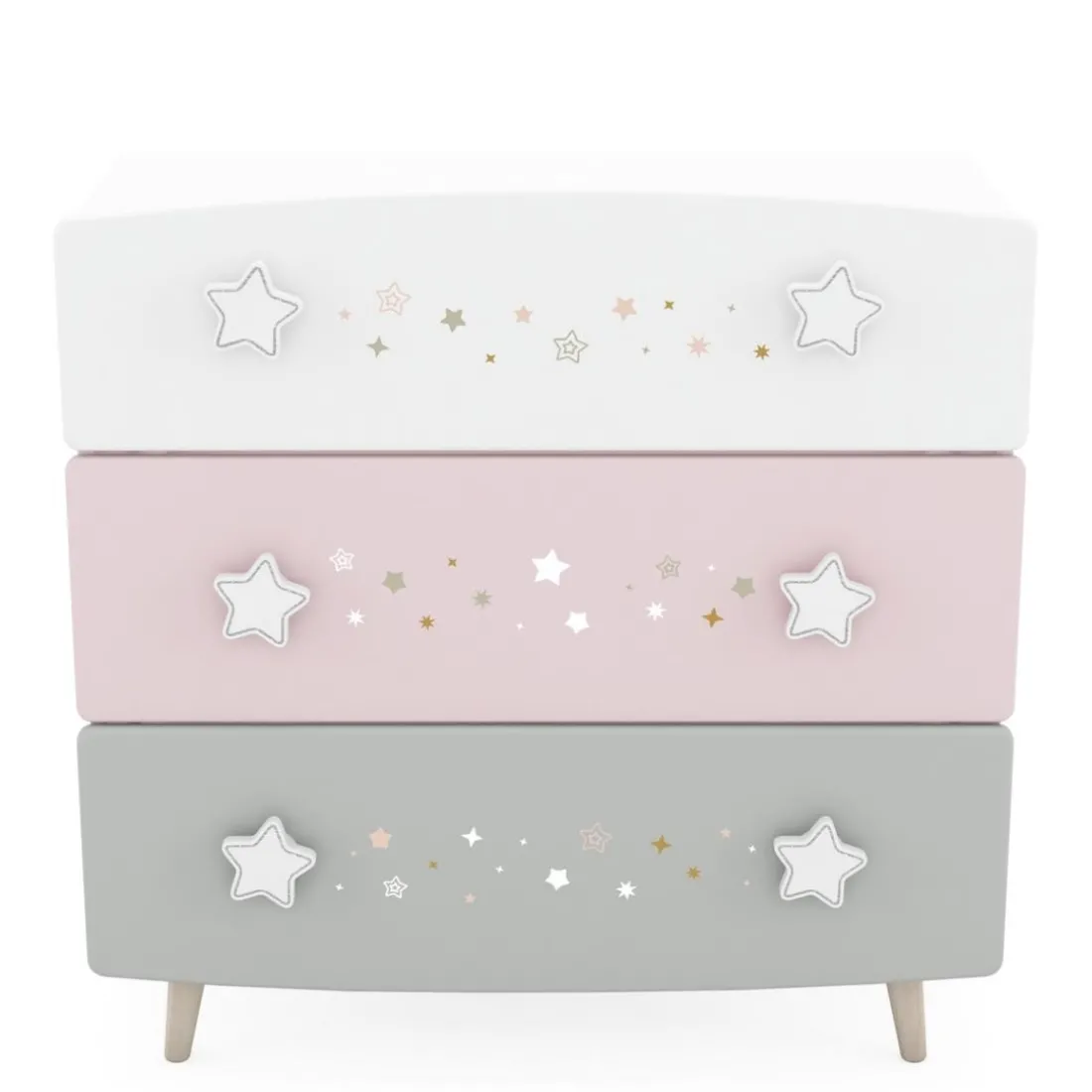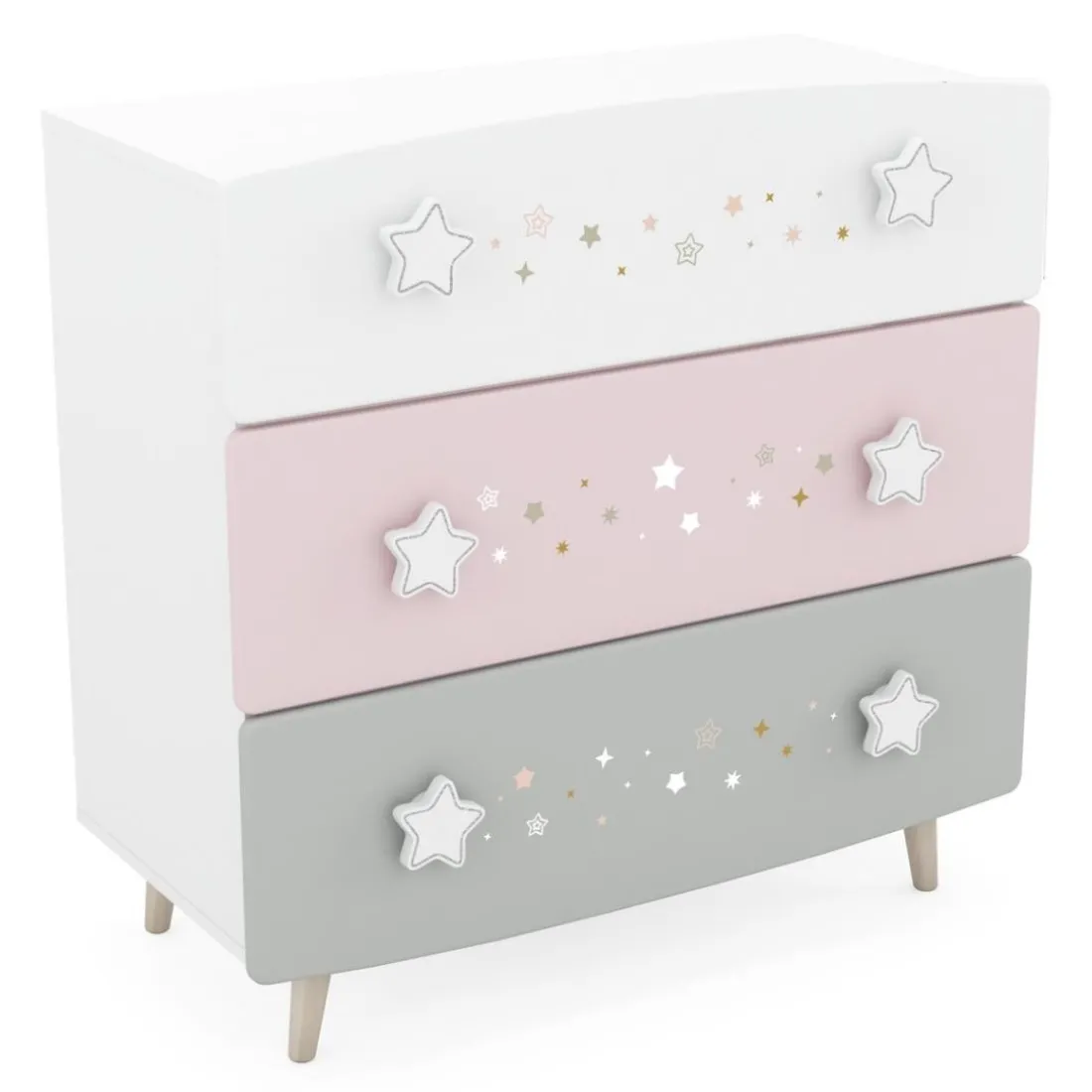 Cette commode 3 tiroirs de la marque Demeyere est le meuble idéal pour ranger avec style. D’une hauteur de 86.5 cm et d’une longueur de 87 cm, elle est fabriquée en panneau de particules et revêtue de contreplaqué (MDF). Ce produit affiche avec fierté sa responsabilité : « Fabriqué en France ». L’image laisse apparaître des tiroirs décorés d’étoiles, ajoutant une touche d’originalité à son design moderne. Le bois est de couleur claire, ce qui donne à cette commode une élégance naturelle. Enfin, son revêtement en MDF garantit une grande robustesse.