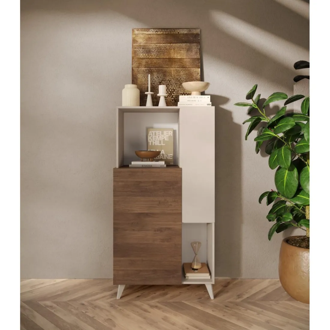 Ce highboard 2 portes signé 3S. x Home allie élégance et fonctionnalité. Avec son style authentique, il donnera un cachet unique à votre intérieur. Ses deux portes se révèlent particulièrement utiles pour un rangement discret de vos objets précieux. Les finitions soignées et le design chic de ce meuble reflètent son caractère haut de gamme. Ses couleurs douces et naturelles offrent à ce highboard une allure à la fois moderne et vintage. Note : Image non incluse.