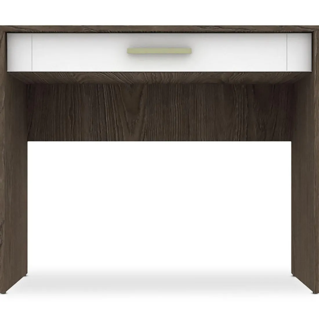 Libérez de l’espace tout en décorant votre intérieur grâce à cette belle Console 1 Tiroir Chêne Foncé Et Blanc. Elle modernise la décoration avec sa structure en bois de chêne foncé et son tiroir blanc décoré de motif géométrique.