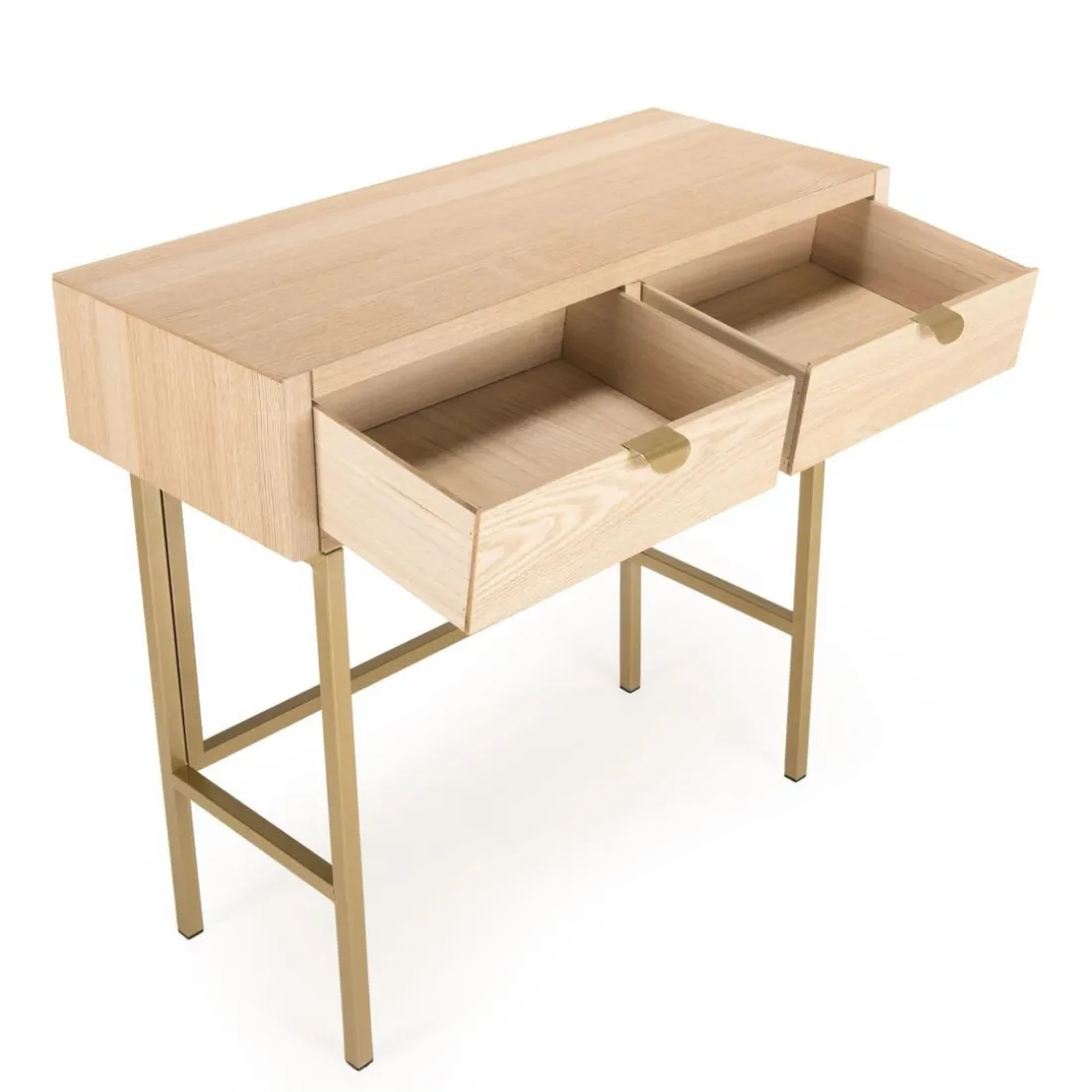 Caractéristiques Console ALINE 2 Tiroirs Pieds Métal Doré