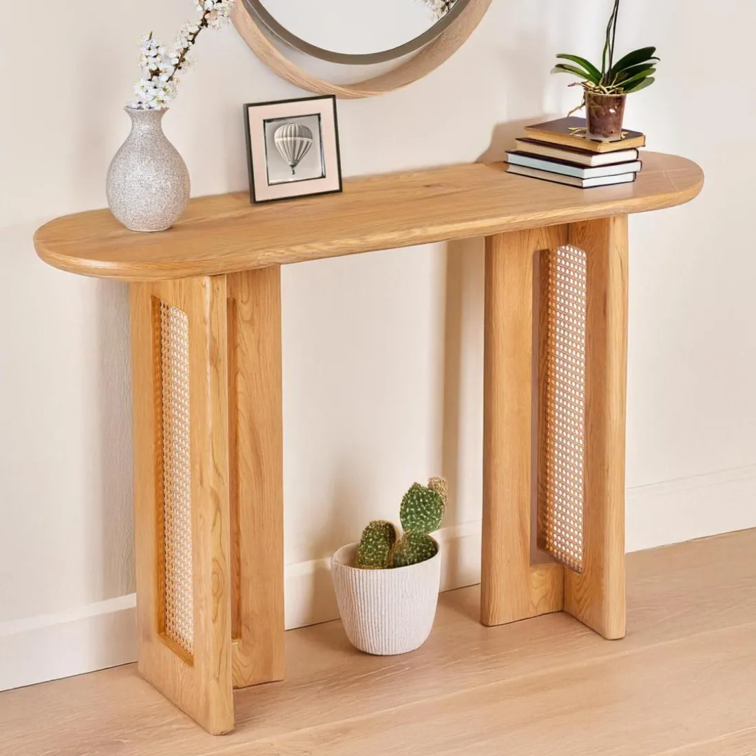 Caractéristiques Console avec cannage Bohemia Chêne clair et Rotin