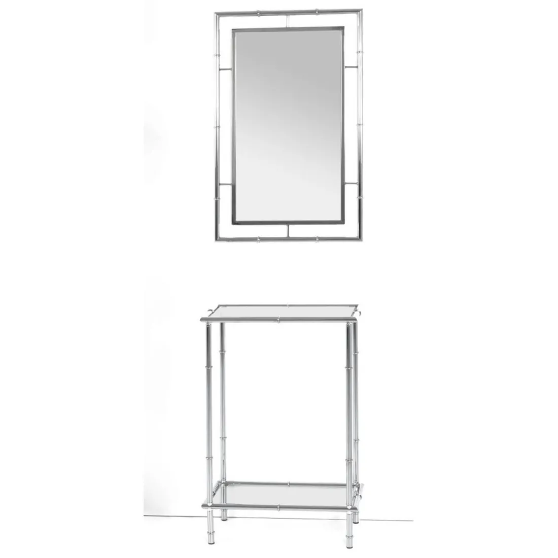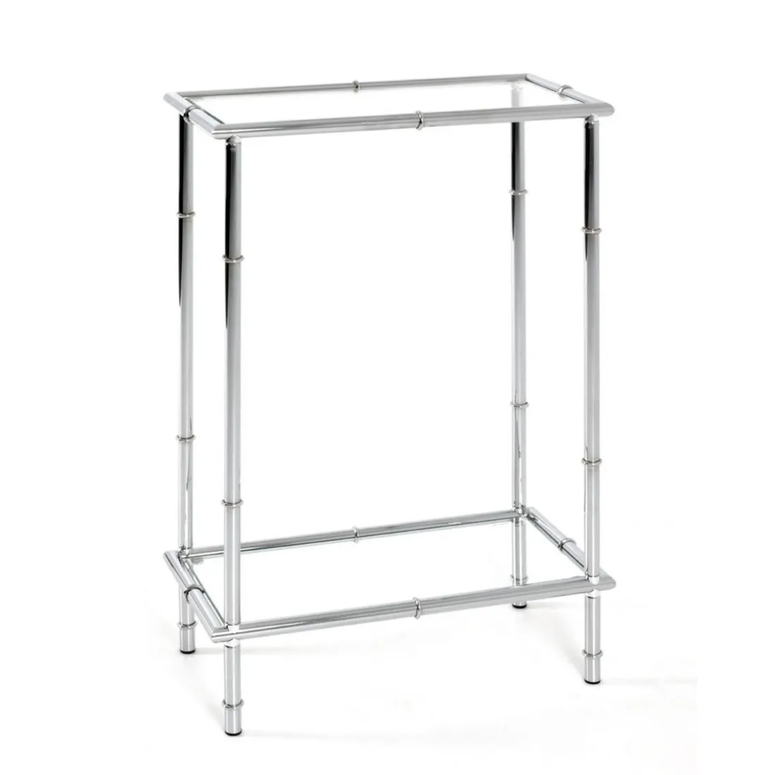 Structure en tube d’acier chromé, plateaux en verre trempé transparent