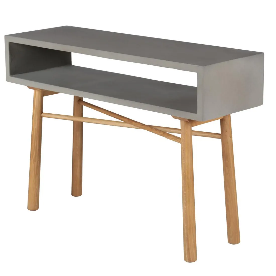 Composée d’un plateau en béton et de pieds en chêne, cette Console DAKAO est parfaite pour apporter une touche de modernité et d’élégance à votre intérieur.